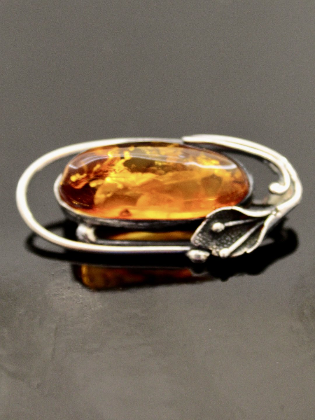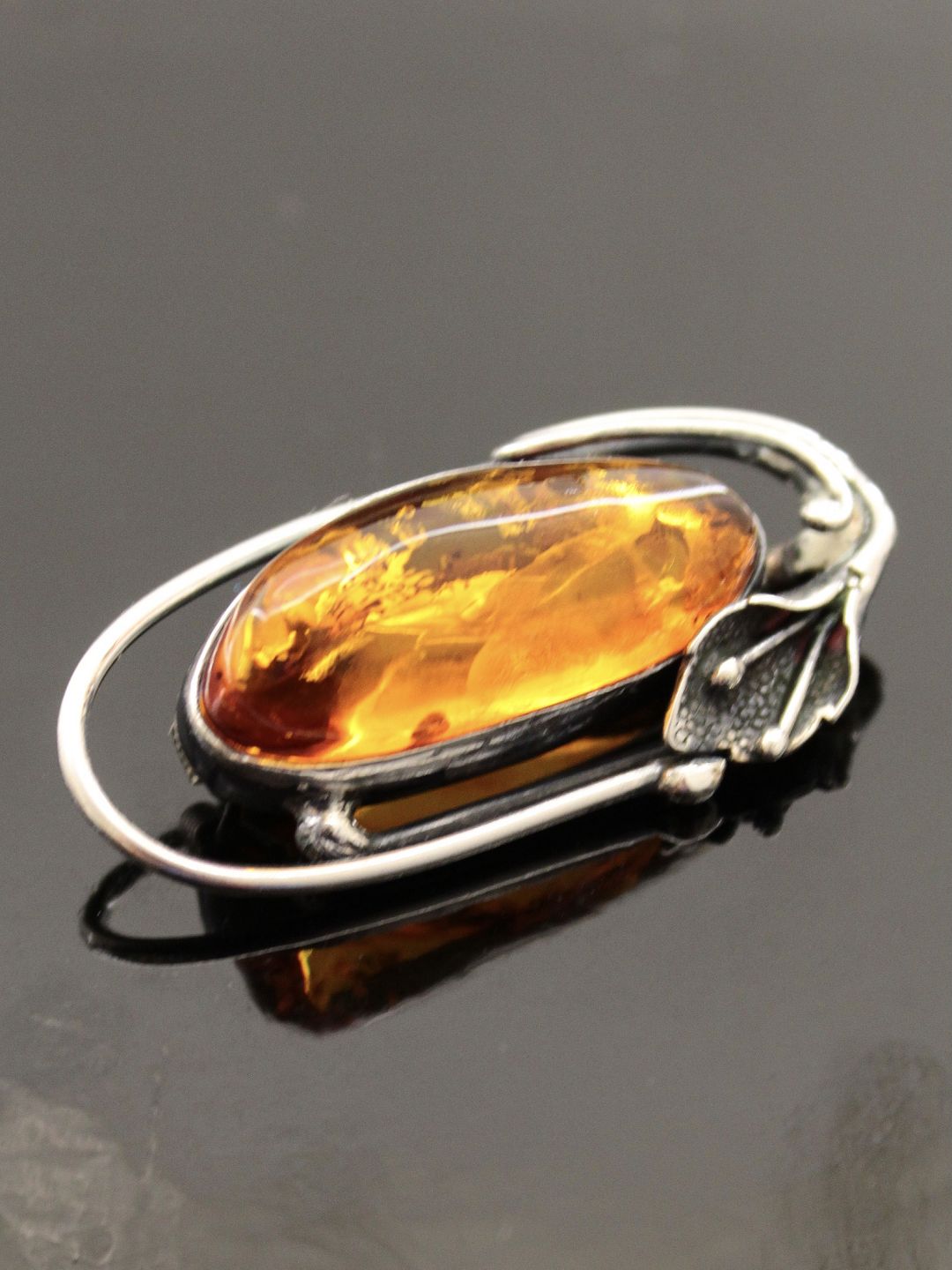 Sterling sølv broche 2,2 x 4,5 cm. med rav emne nr. 466146
