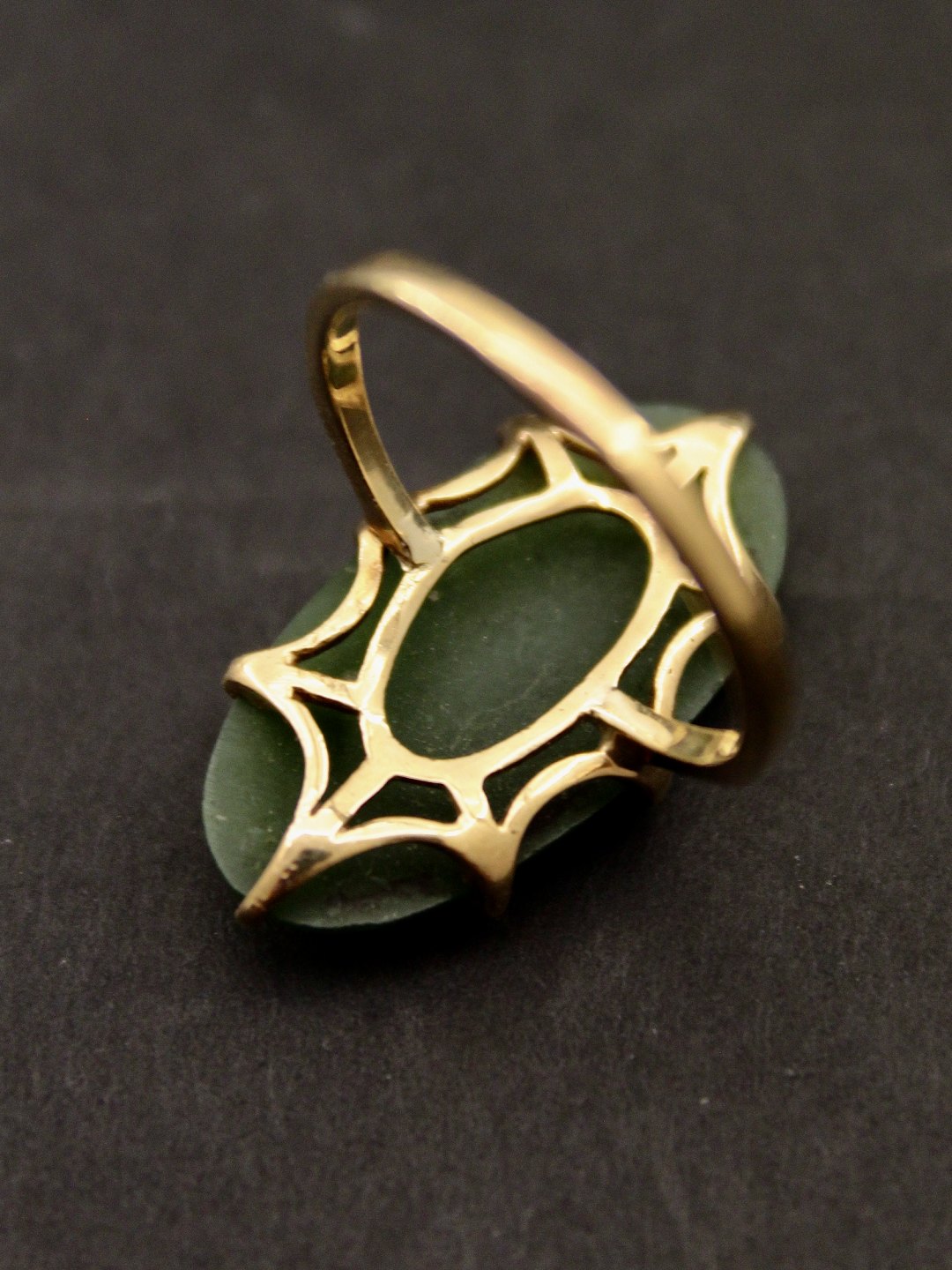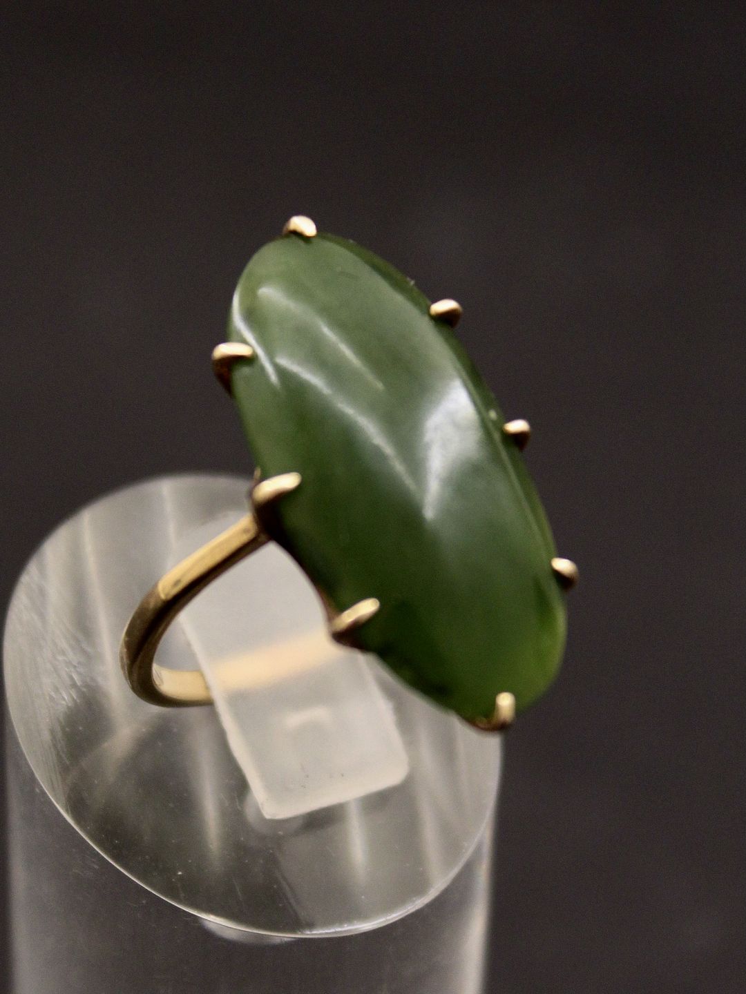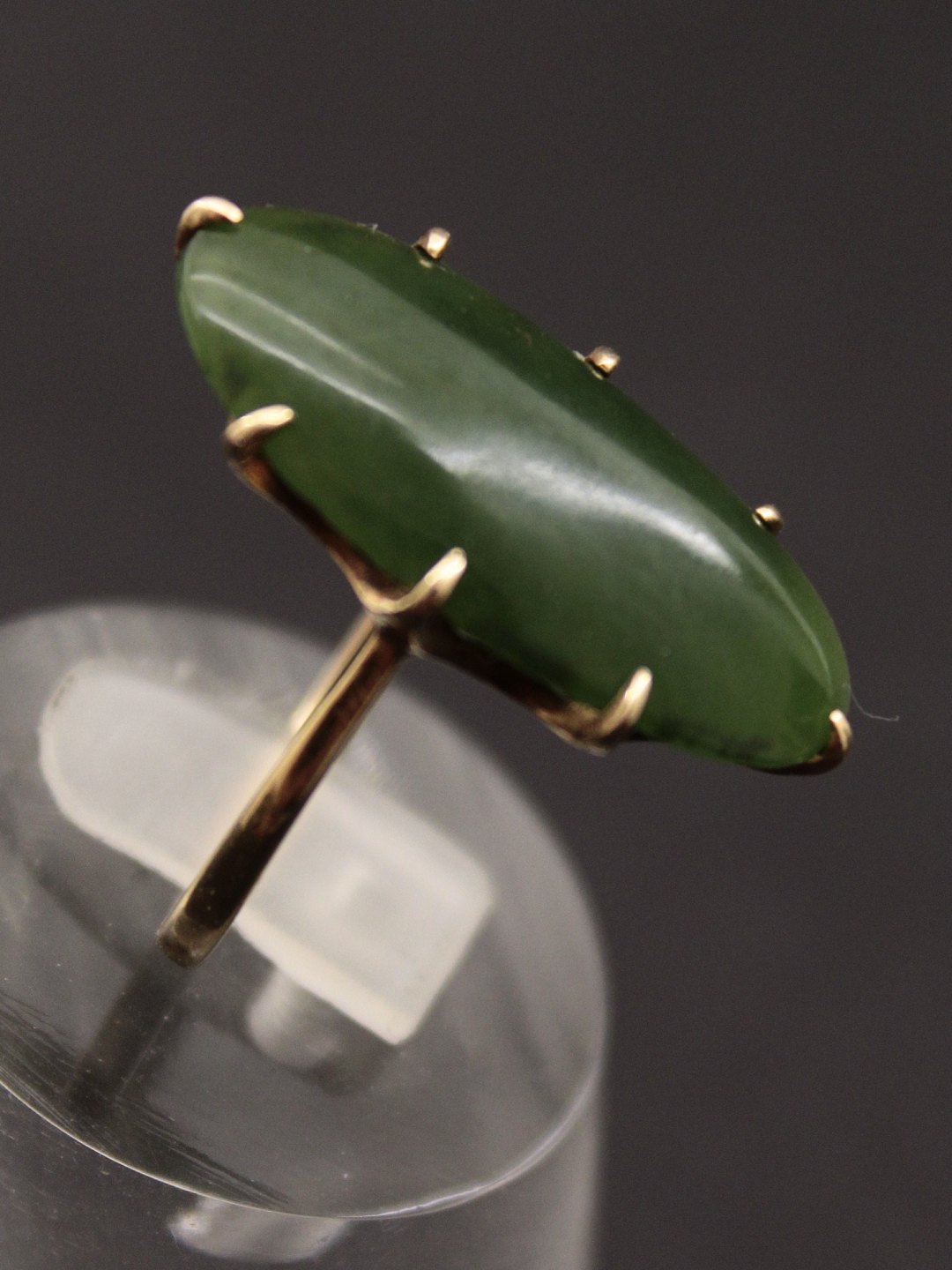 9 karat guld ring størrelse 56 med jade 2,5 x 1,4 cm. emne nr. 466239