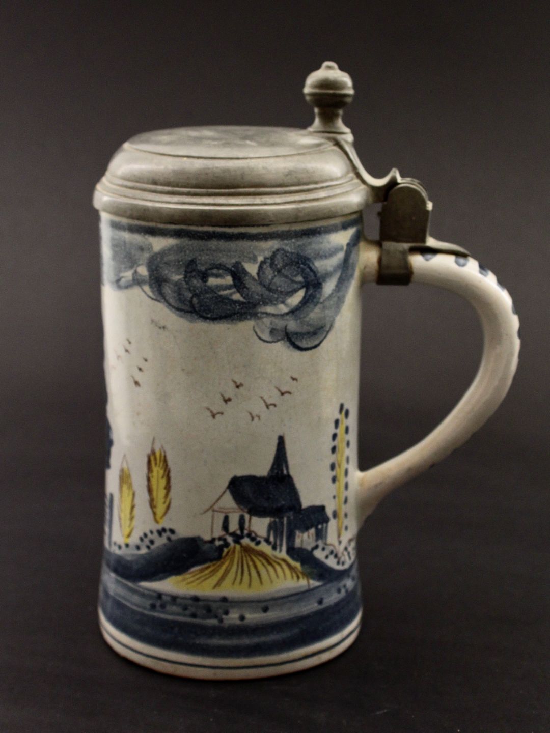 Fajance krus 24 cm. med tin låg 20.årh. emne nr. 466512