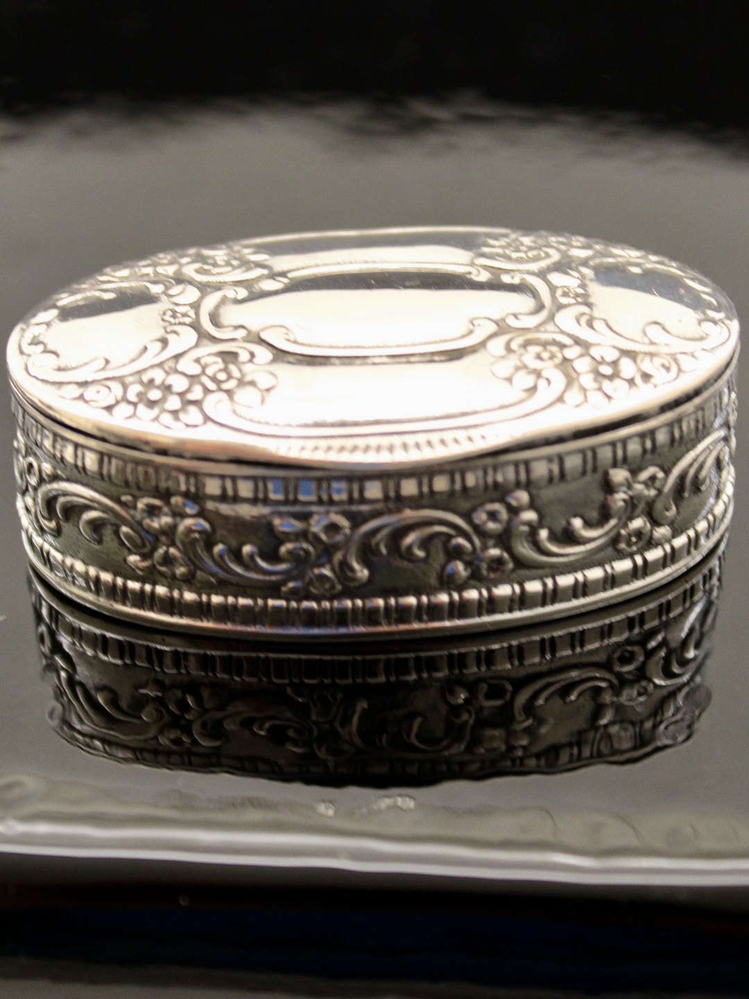 830 sølv pille æske L. 5.5 cm. fra sølvsmed H. Jensen Kbh. emne nr. 467299