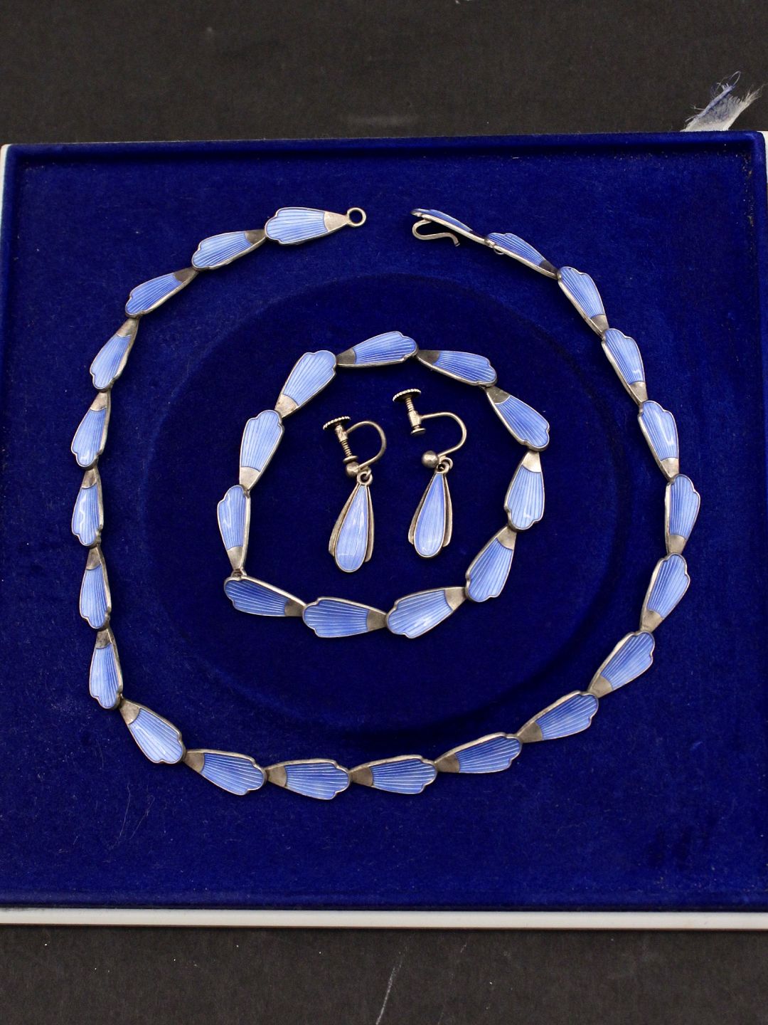 Jewelry set sterling silver with enamel necklace 38 cm. armrest 18.5 cm. Danish design from silversmith Viggo Berntsen item no. 469665