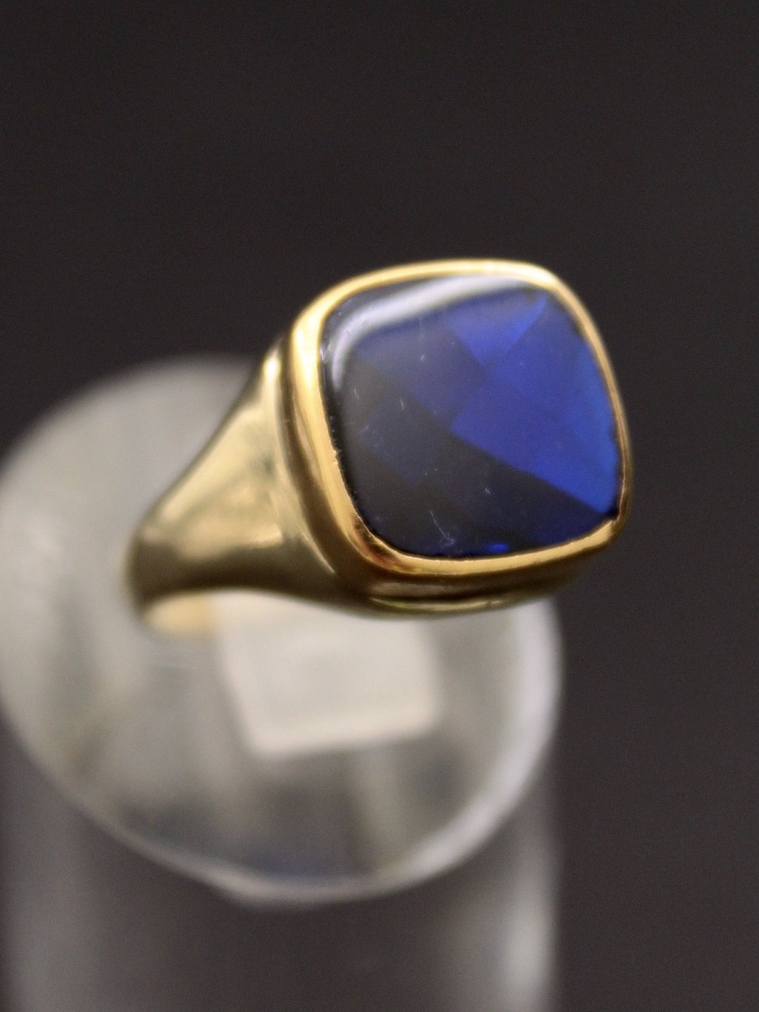 8 karat guld ring størrelse 57-58 med flot blå sten frs juveler Herman Siersbøl København emne nr. 471502