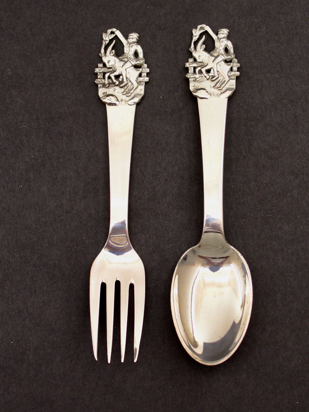 H.C.Andersen 830 sølv ske gaffel 14,5 cm. "Klods Hans" flot stand ingen graveringer emne nr. 472666