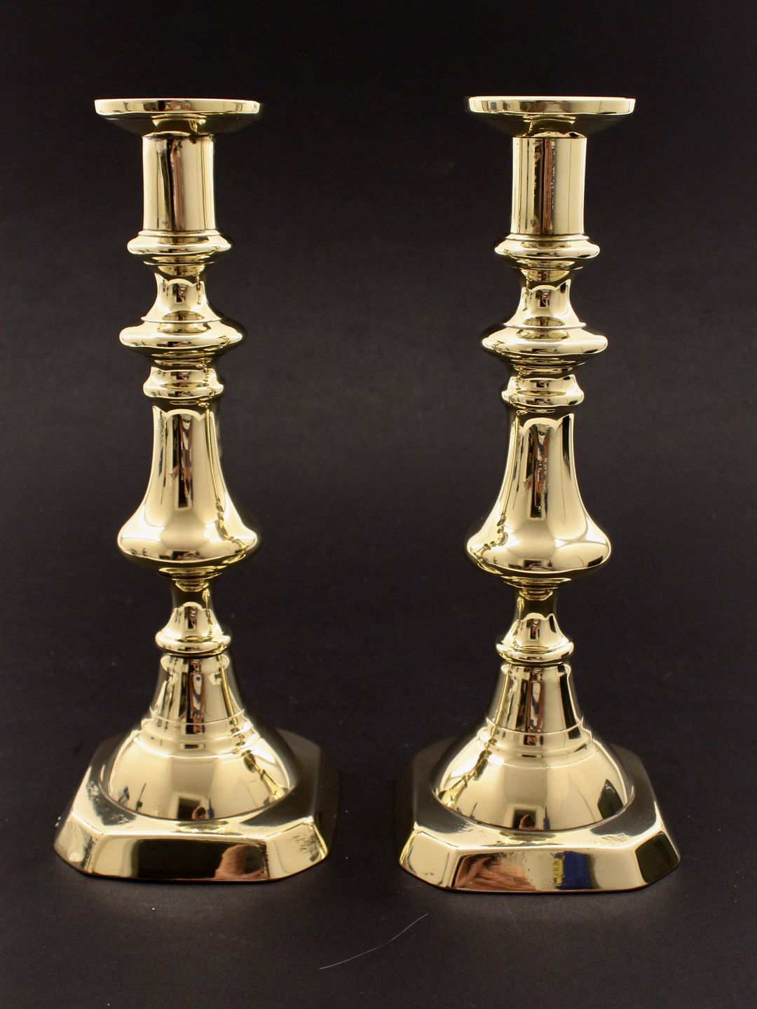 Messing lysestager på firkantet fod H. 29 cm. 19.årh. emne nr. 4727668