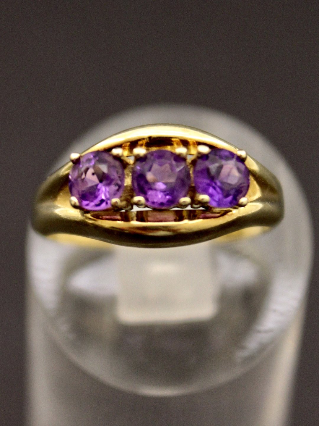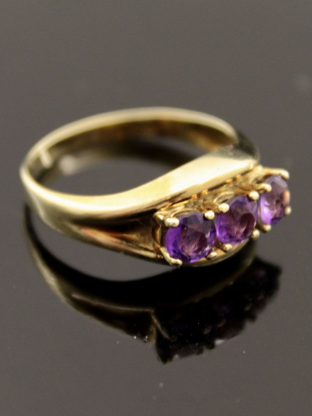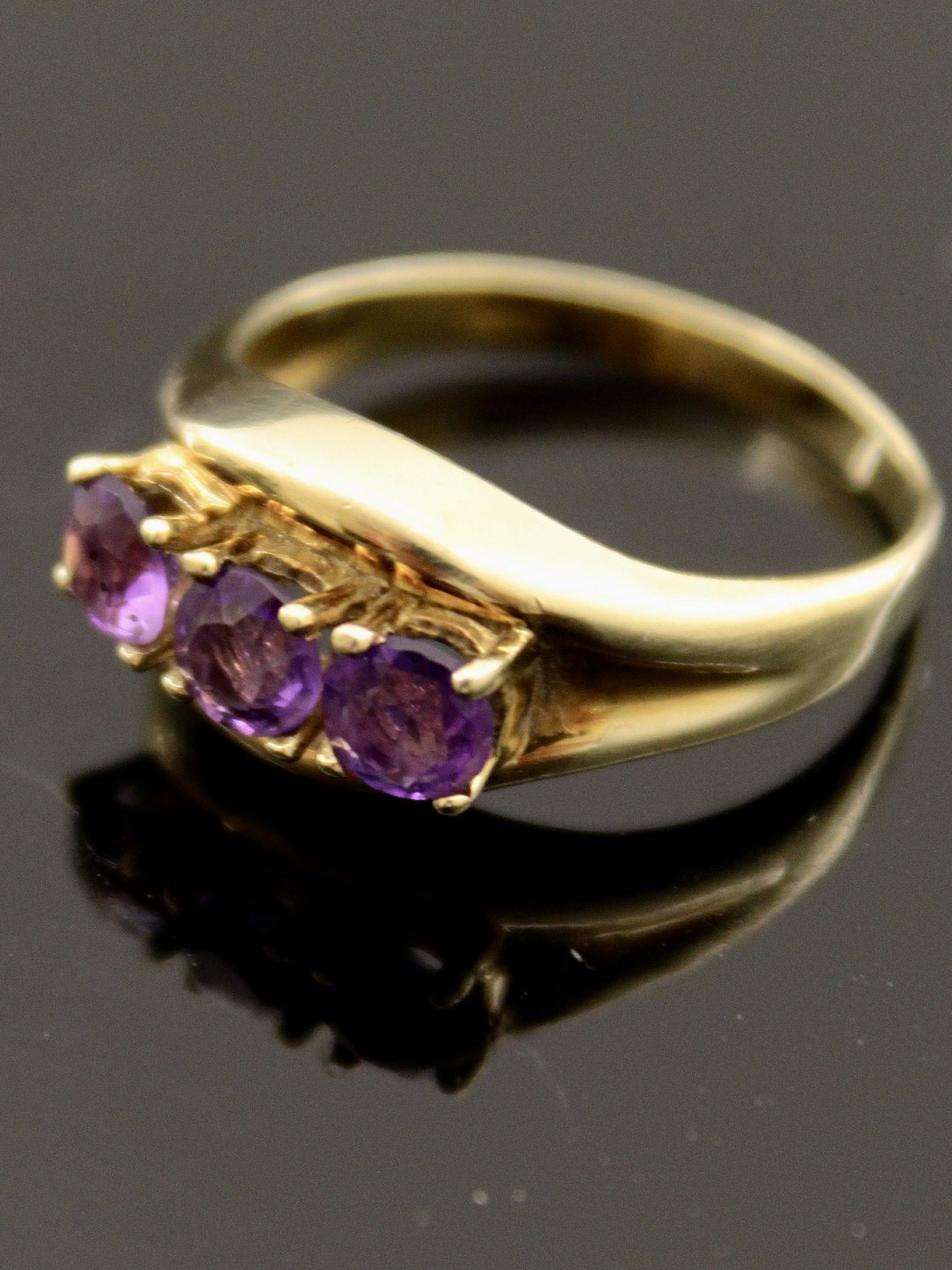 8 karat guld ring størrelse 57 med 3 ametyster emne nr. 479540