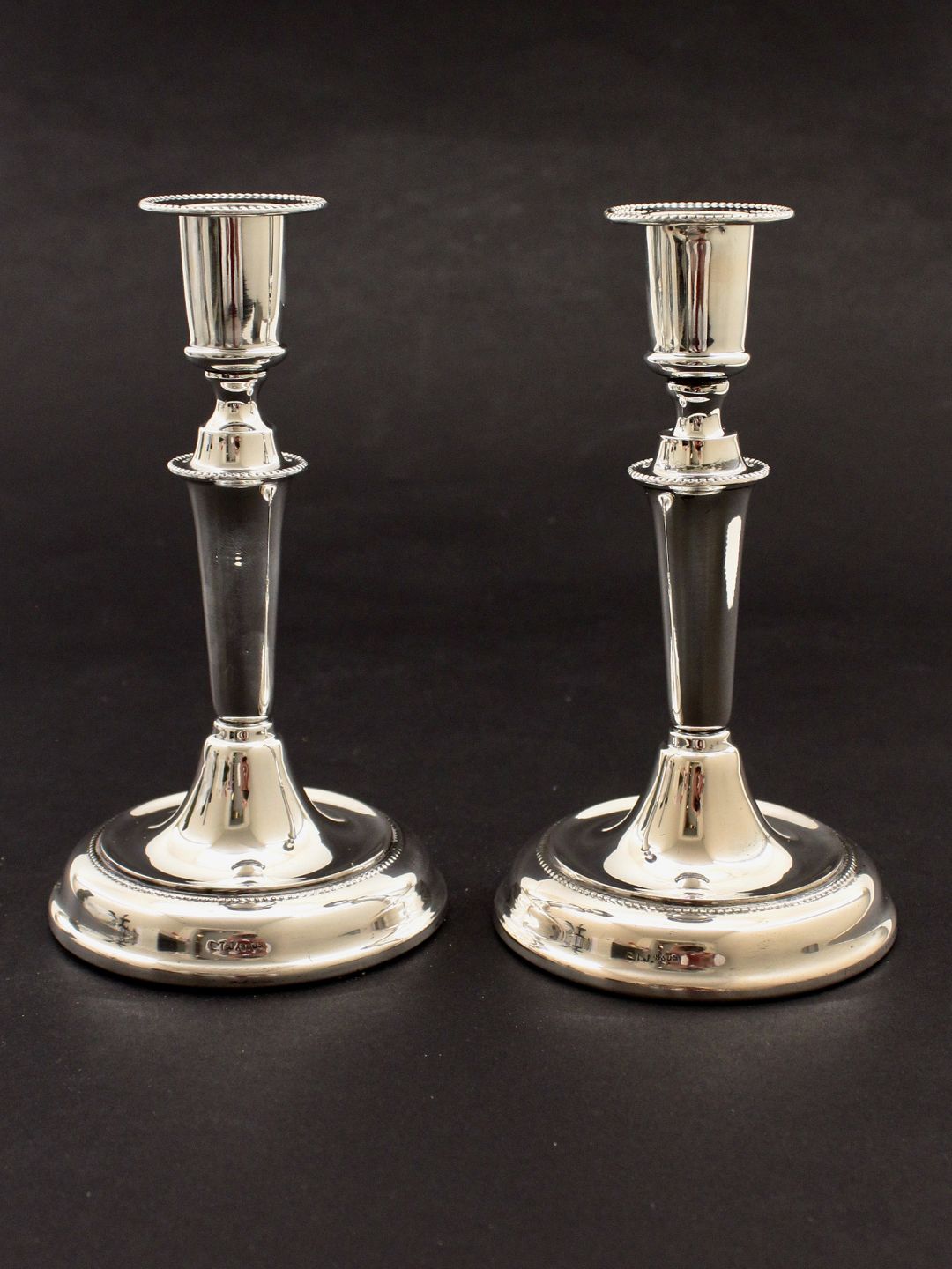 Pair of 830 silver candlesticks H. 16.5 cm. from silversmith E T Jacobsen Herlev one light cuff slightly bent item no. 482190