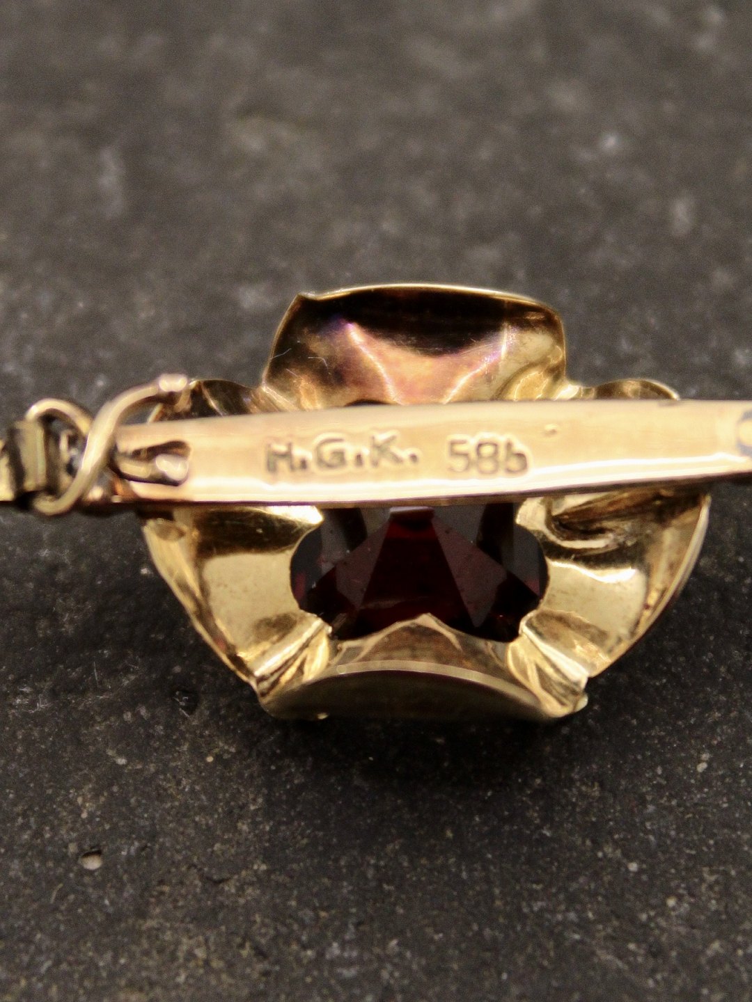 14 karat guld broche 4 cm. med turmalin emne nr. 482867
