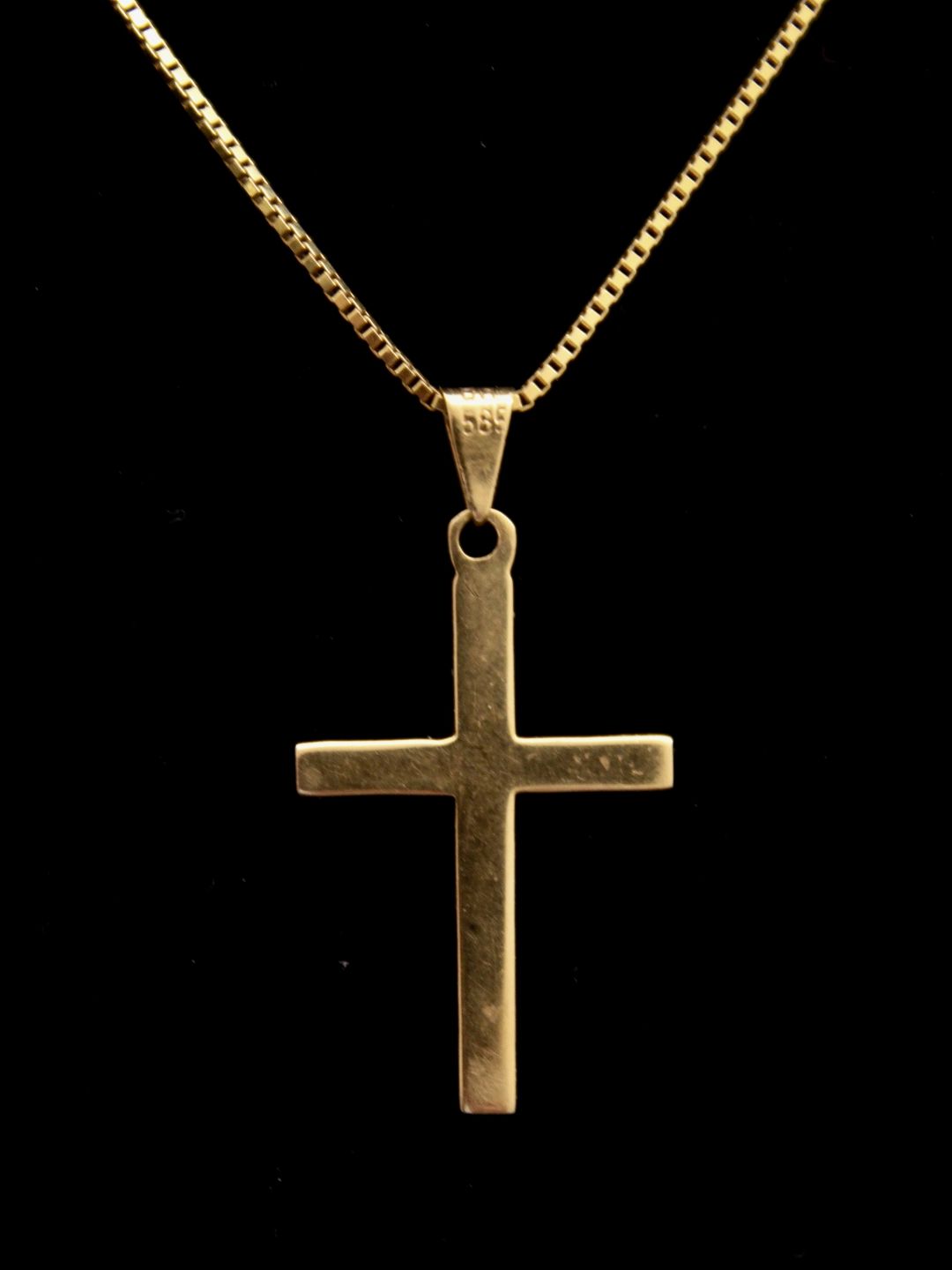 14 karat guld halskæde 36 cm. og kors 2,5 x 1,6 cm. fra juveler B Hertz København emne nr. 483826
