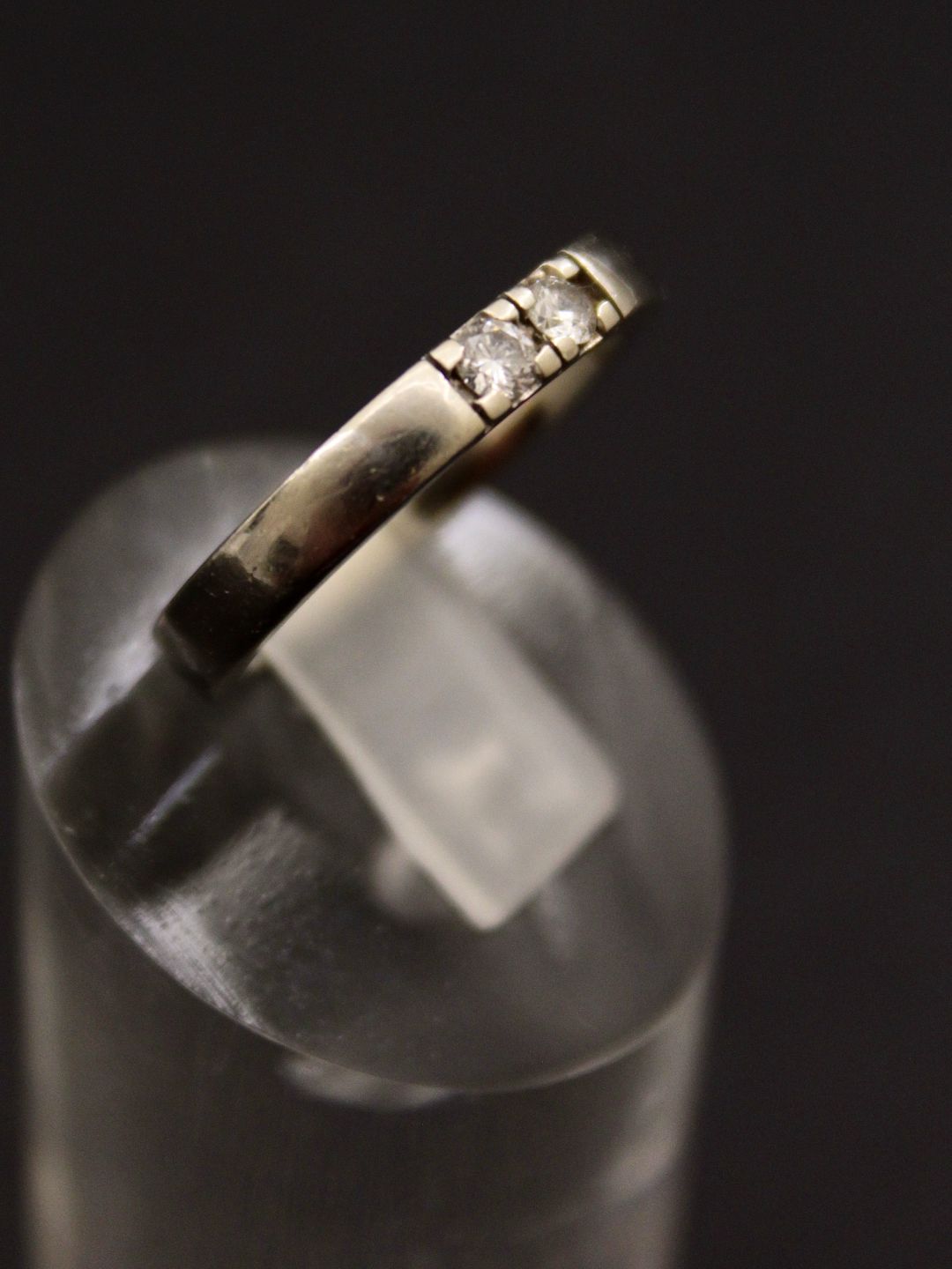 14 karat hvid guld ring størrelse 52 med 2 diamanter a' ca. 0,10 carat fra guldsmed Bræmer Jensen Randers emne nr. 485873