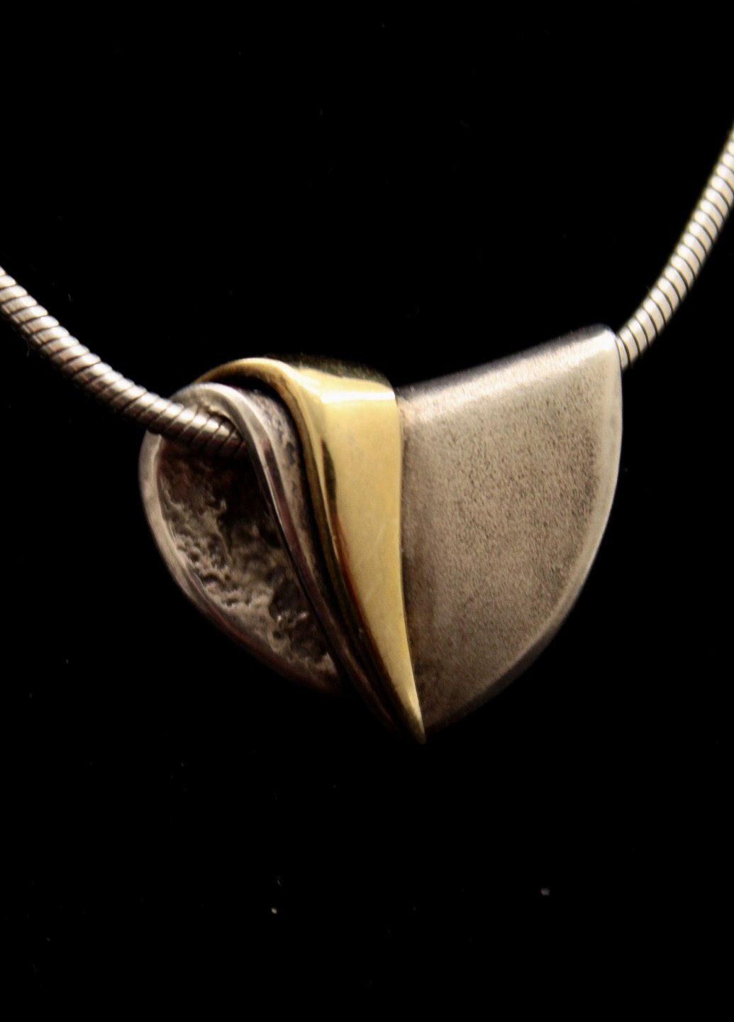 Sterling silver neck lace 42.5 cm. pendant with stripe of gold from silversmith Jens Aagaard Svendborg item no. 488771 Stock: 1