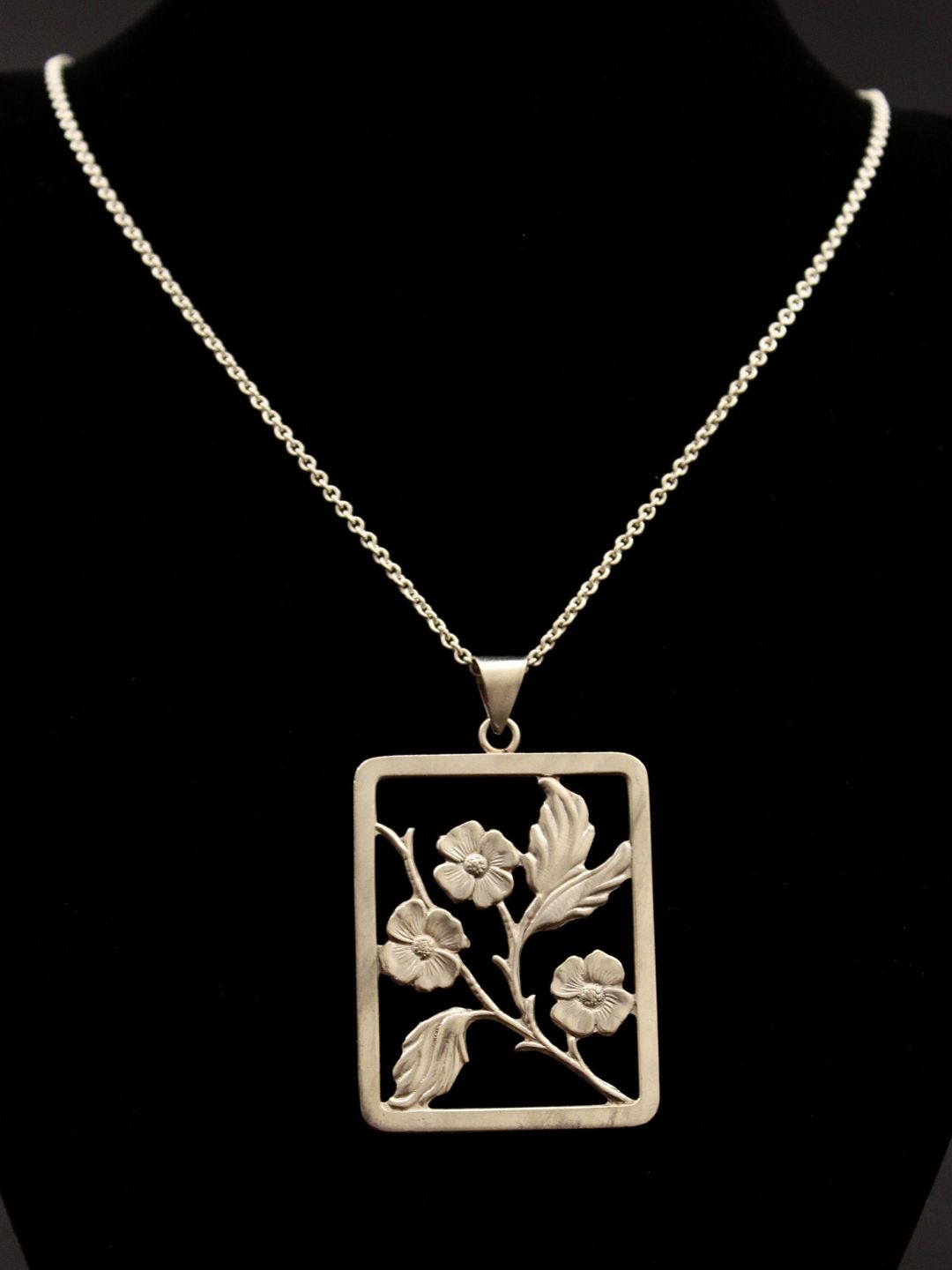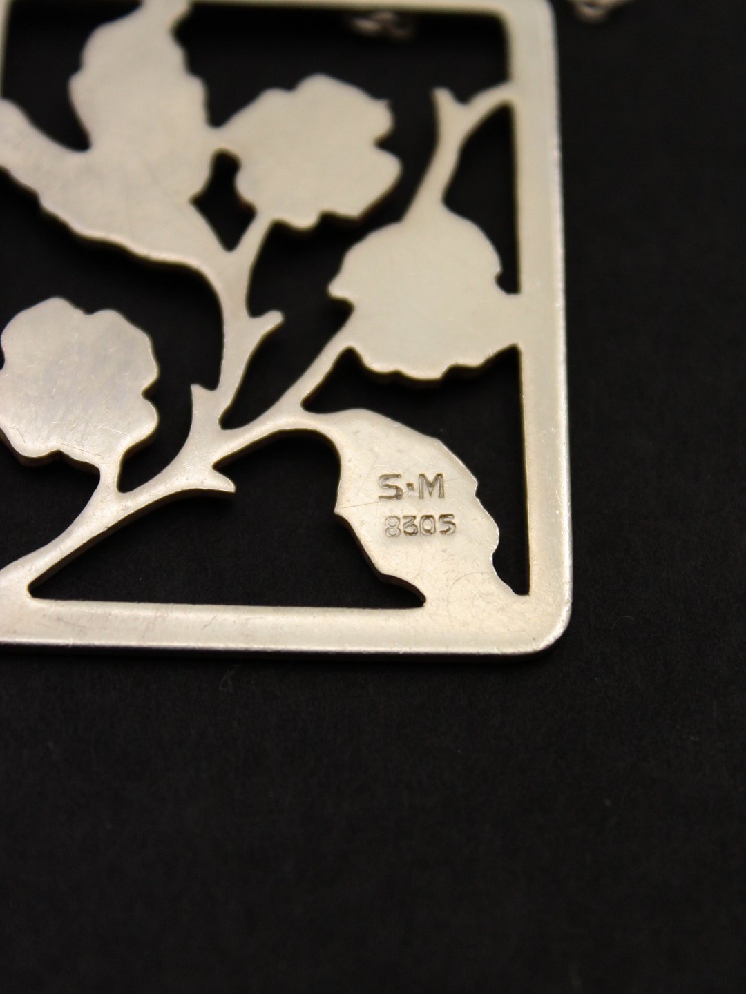 Sølv kæde 60 cm. med 83o sølv art deco vedhæng 3,5 x 4,5 cm.