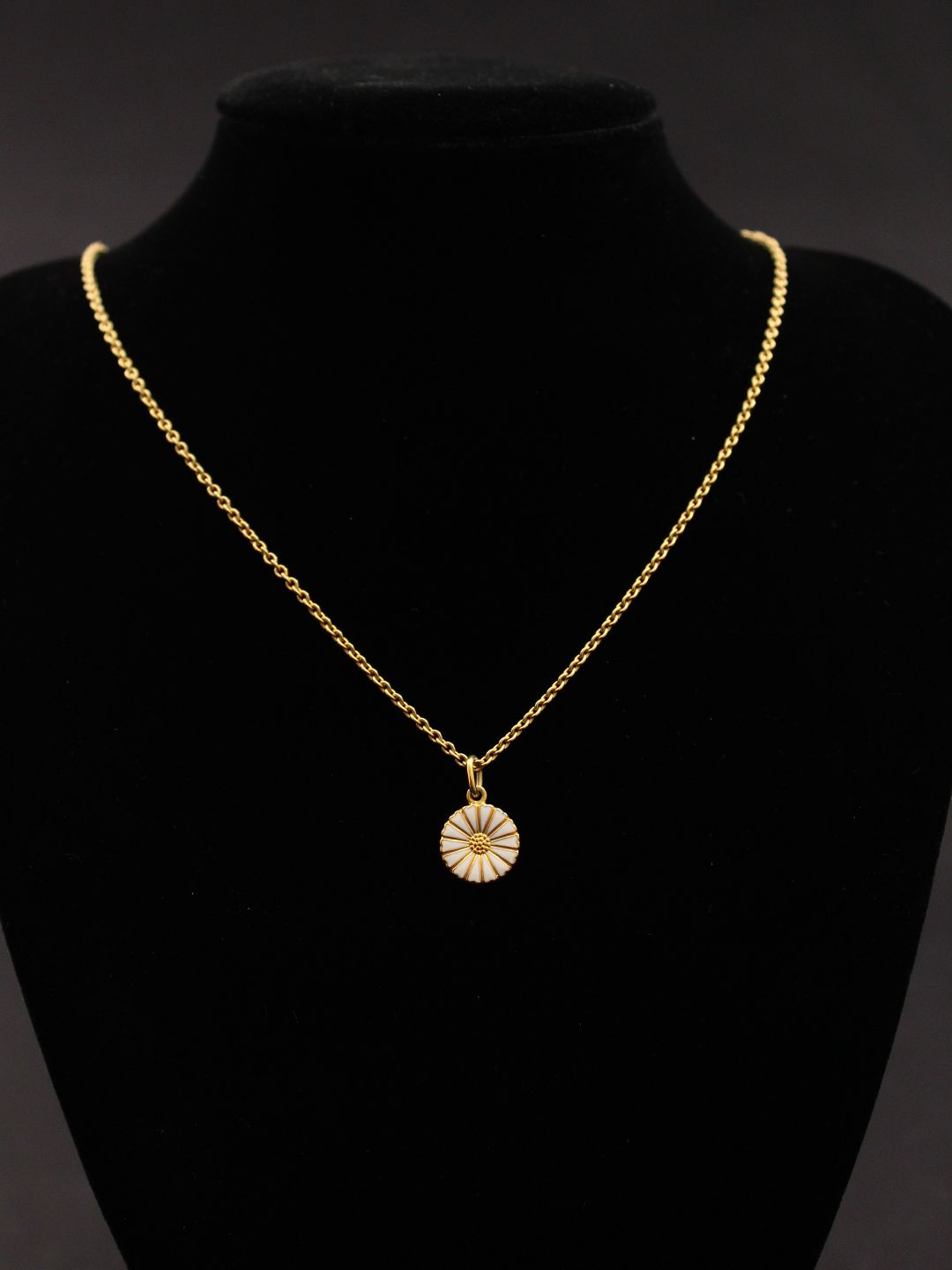 Forgyldt sterling sølv kæde 46 cm. med marguerit vedhæng 1,2 cm. fra juveler B.Hertz emne nr. 492732