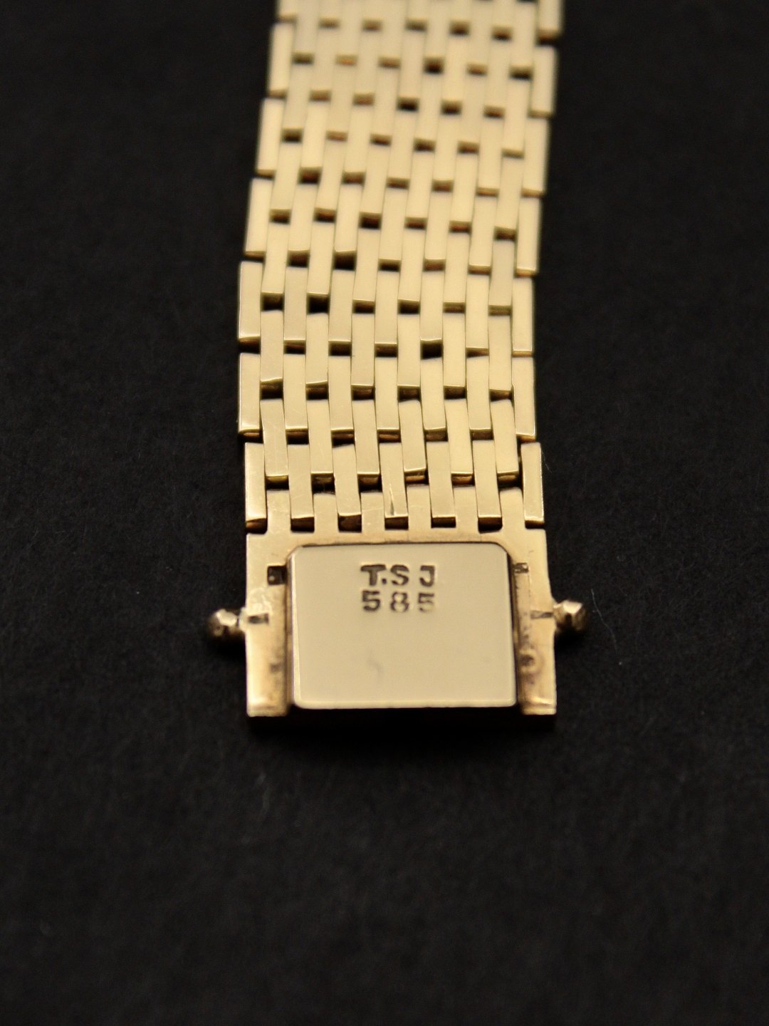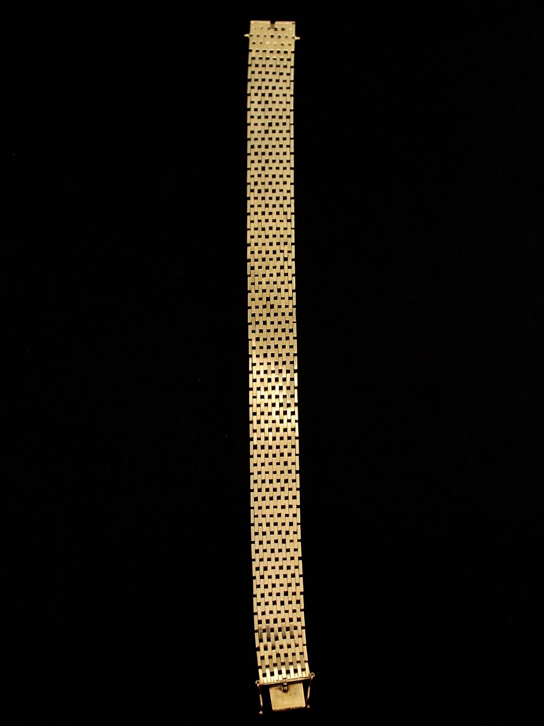 14 karat guld armlænke 18,5 cm. B. 1,3 cm. 30,8 gram fra guldsmed Tom Søgård Jensen København emne nr. 495346