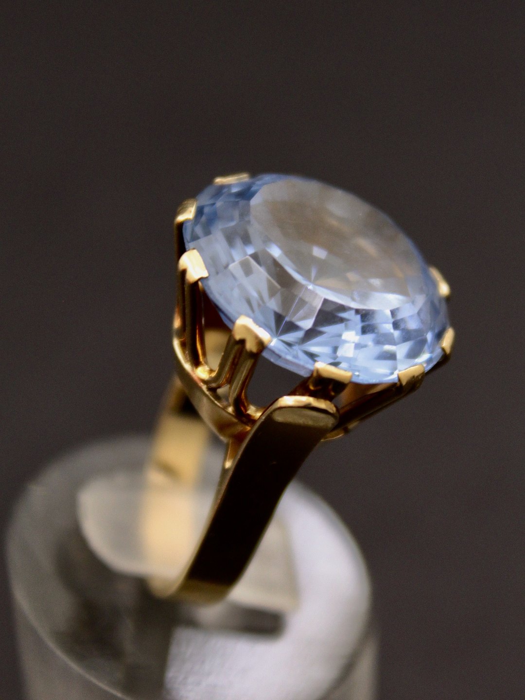 14 carat gold ring size 53 with aquamarine D. 1.8 cm. from jeweler J�rgen Larsen Copenhagen item no. 496116
