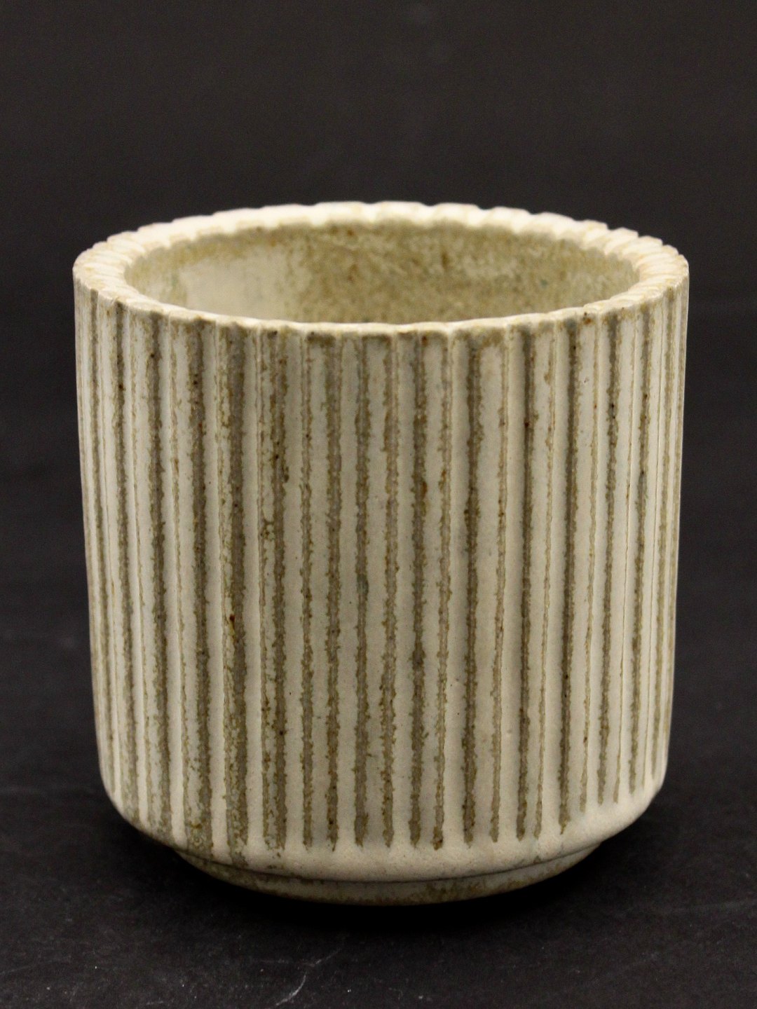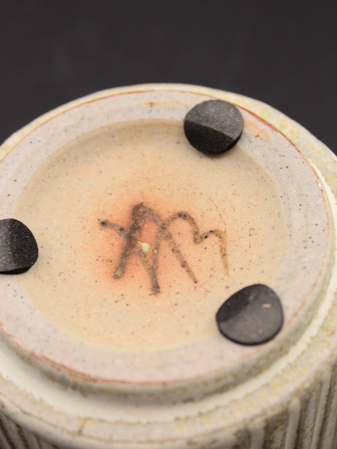 Arne Bang (1901-1983) Danish design Bowl / vase in glazed ceramic grooved body and beautiful glaze in sand shades 9 x 9 cm. nice condition. item no. 501450