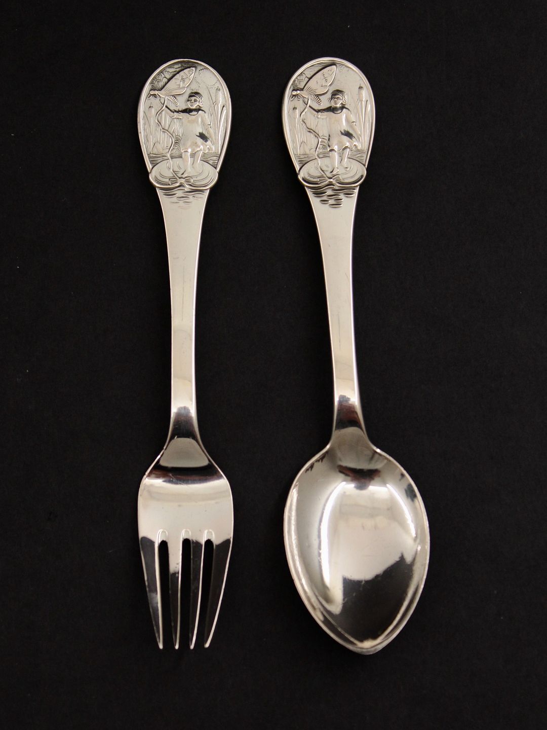 H C Andersen barne bestik 14 cm. "Tommelise" 830 sølv flot ingen graveringer emne nr. 502291