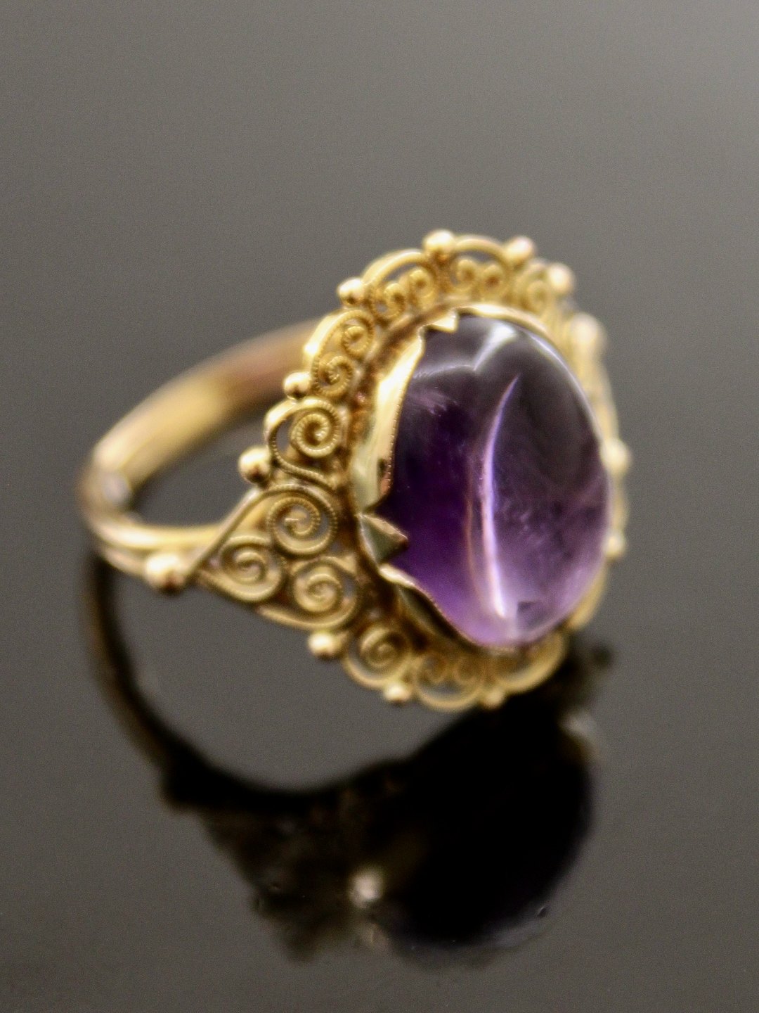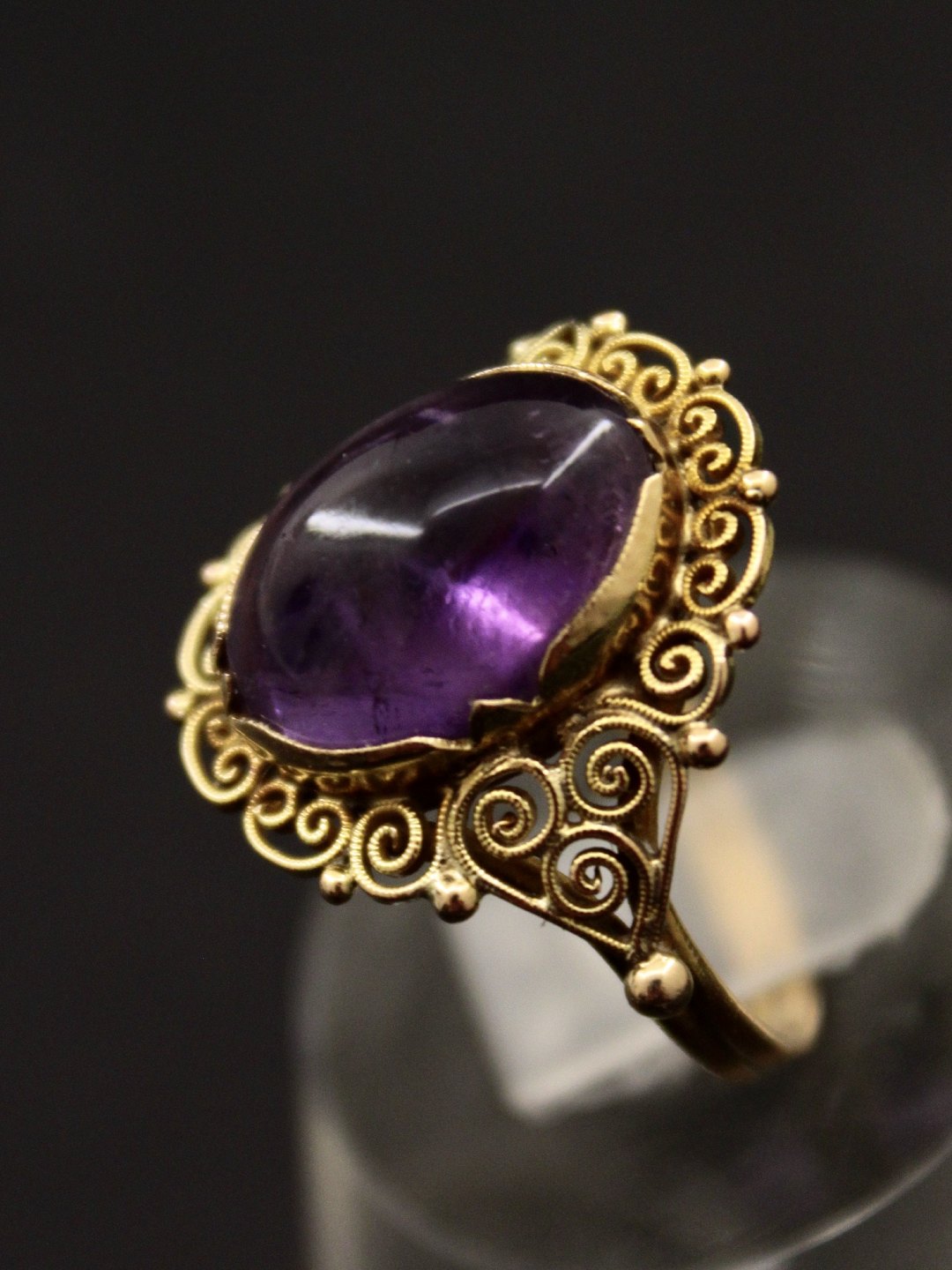 14 carat gold ring size 57 with cabochon cut amethyst 1.1 x 1.4 cm. item no. 502594