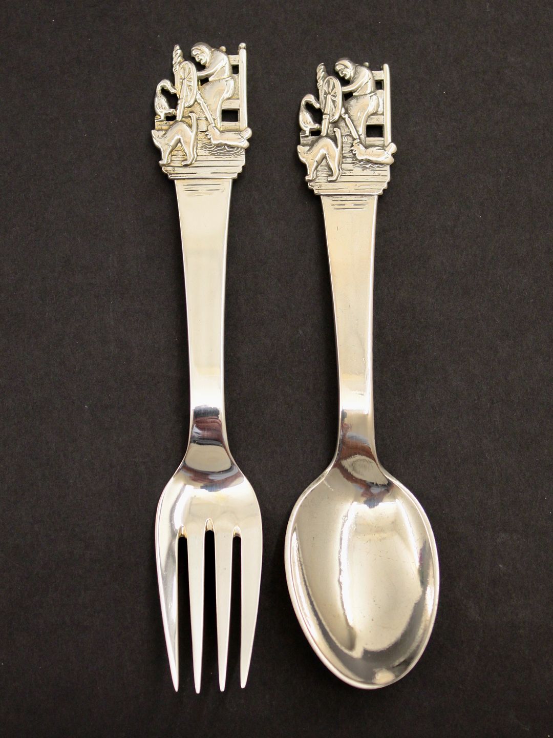 H.C. Andersen Eventyr barne bestik i tretårnet Sølv 15 cm. "Spinderokken" som ny ingen graveringer. emne nr. 502952