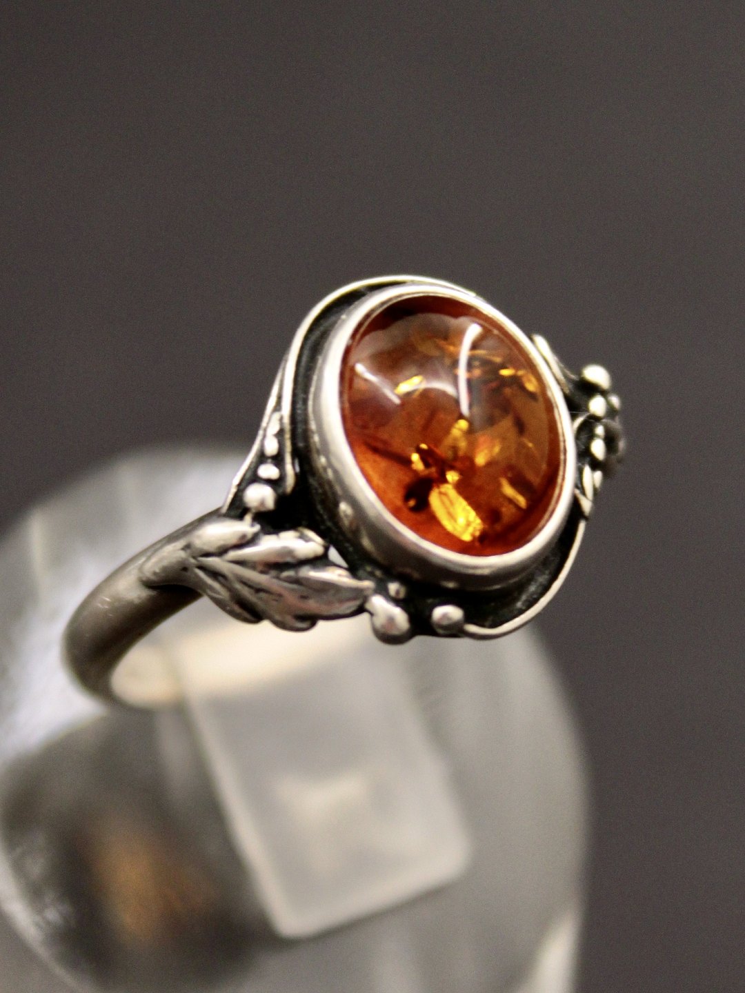 Sterling sølv ring størrelse 56-57 med rav emne nr. 503934
