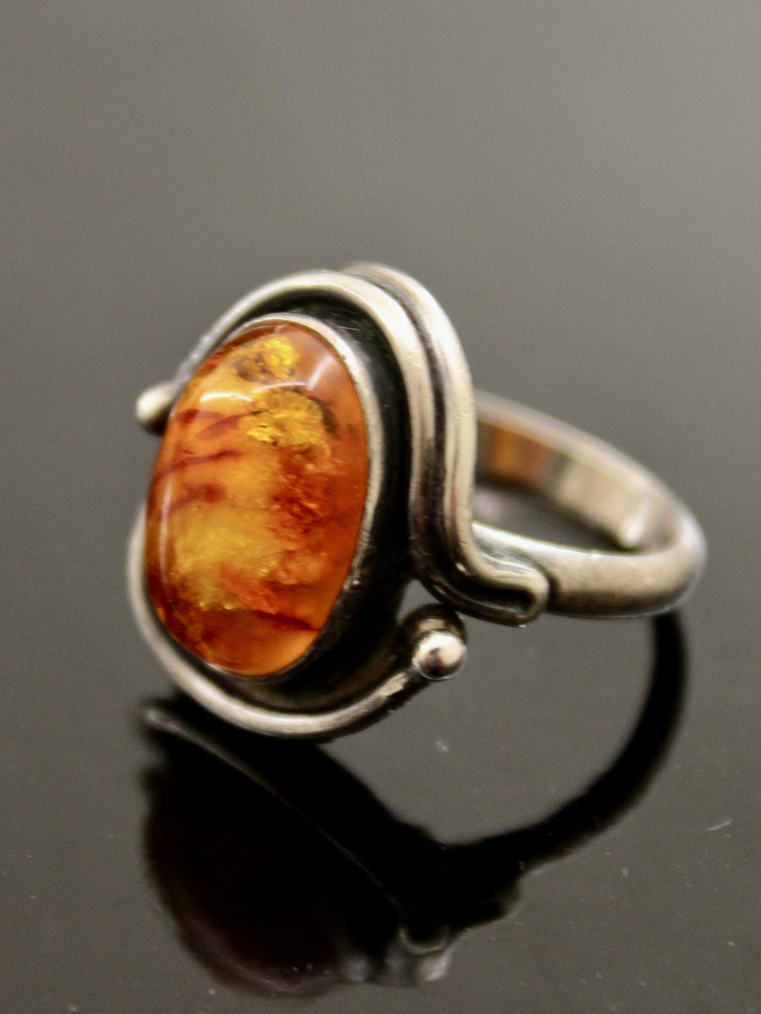 Sterling sølv ring størrelse 53-54 med rav 1,4 x 1 cm. emne nr. 504564