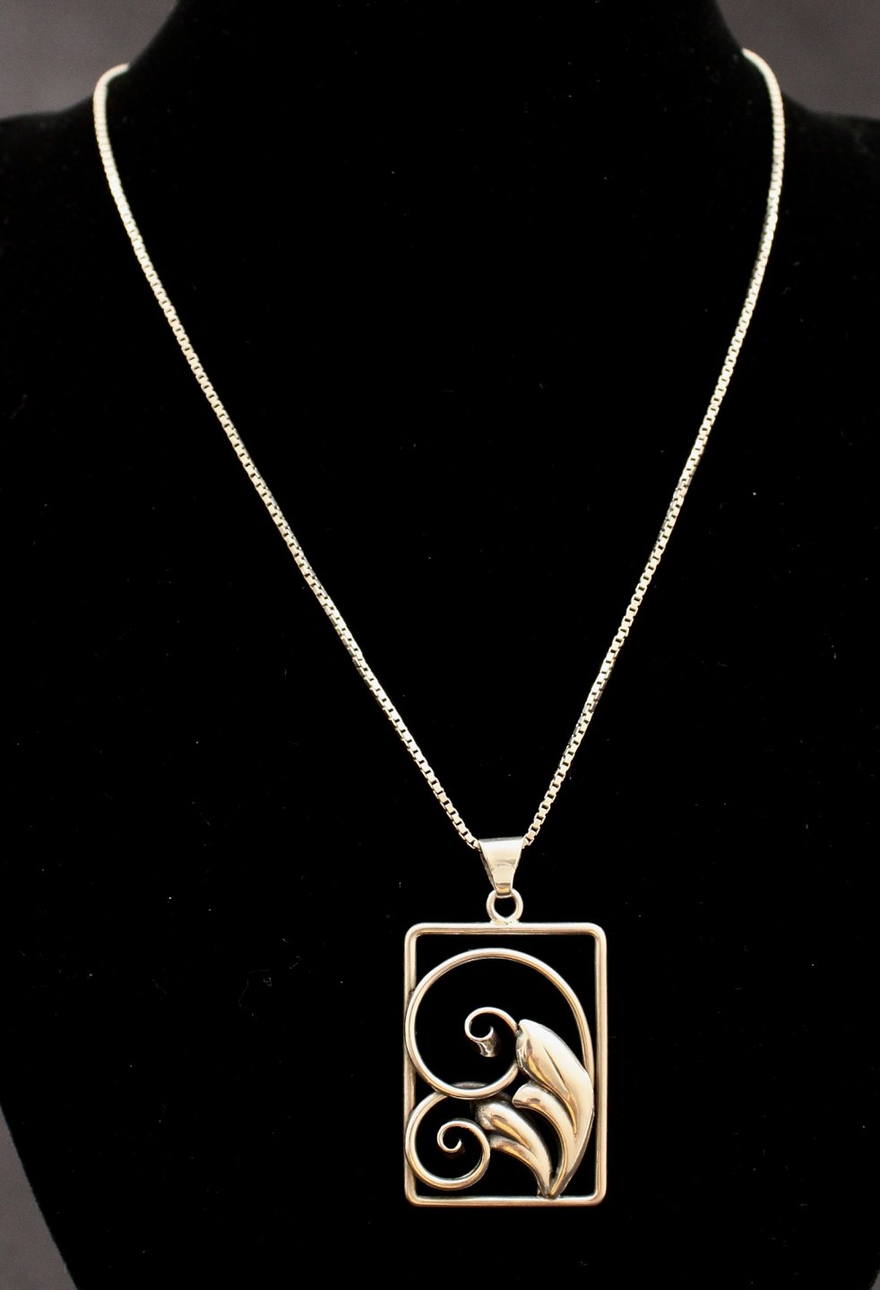 Art deco 830 sølv vedhæng 3,8 x 2,5 cm. sølvkæde 39 cm. emne nr. 504631