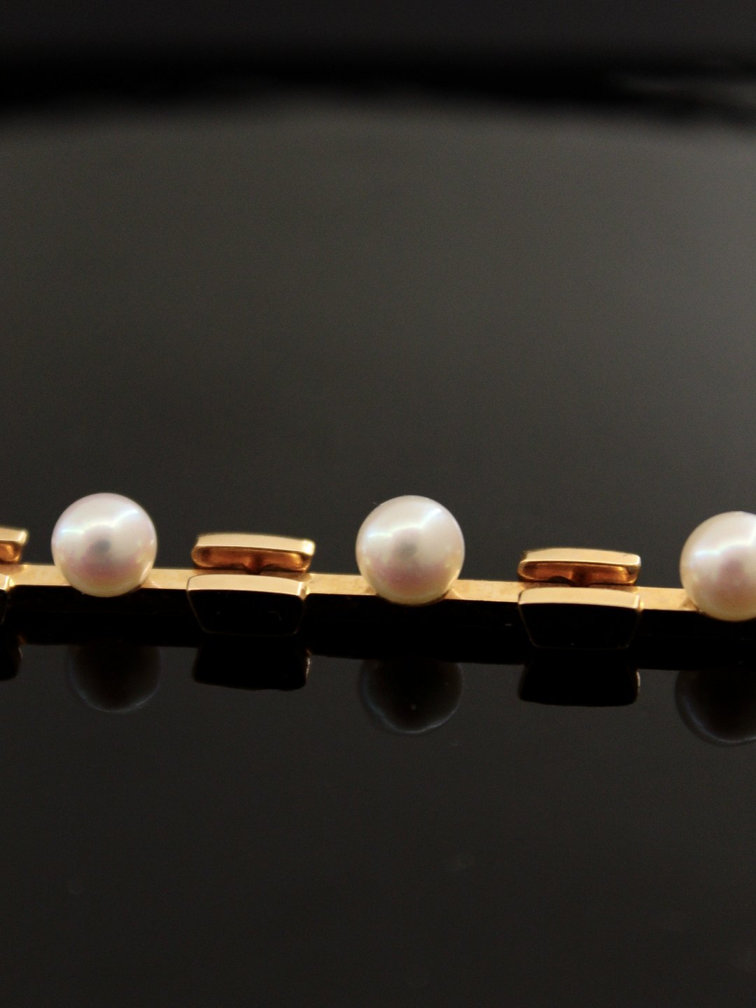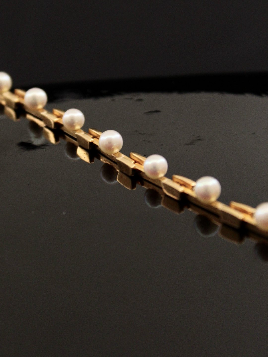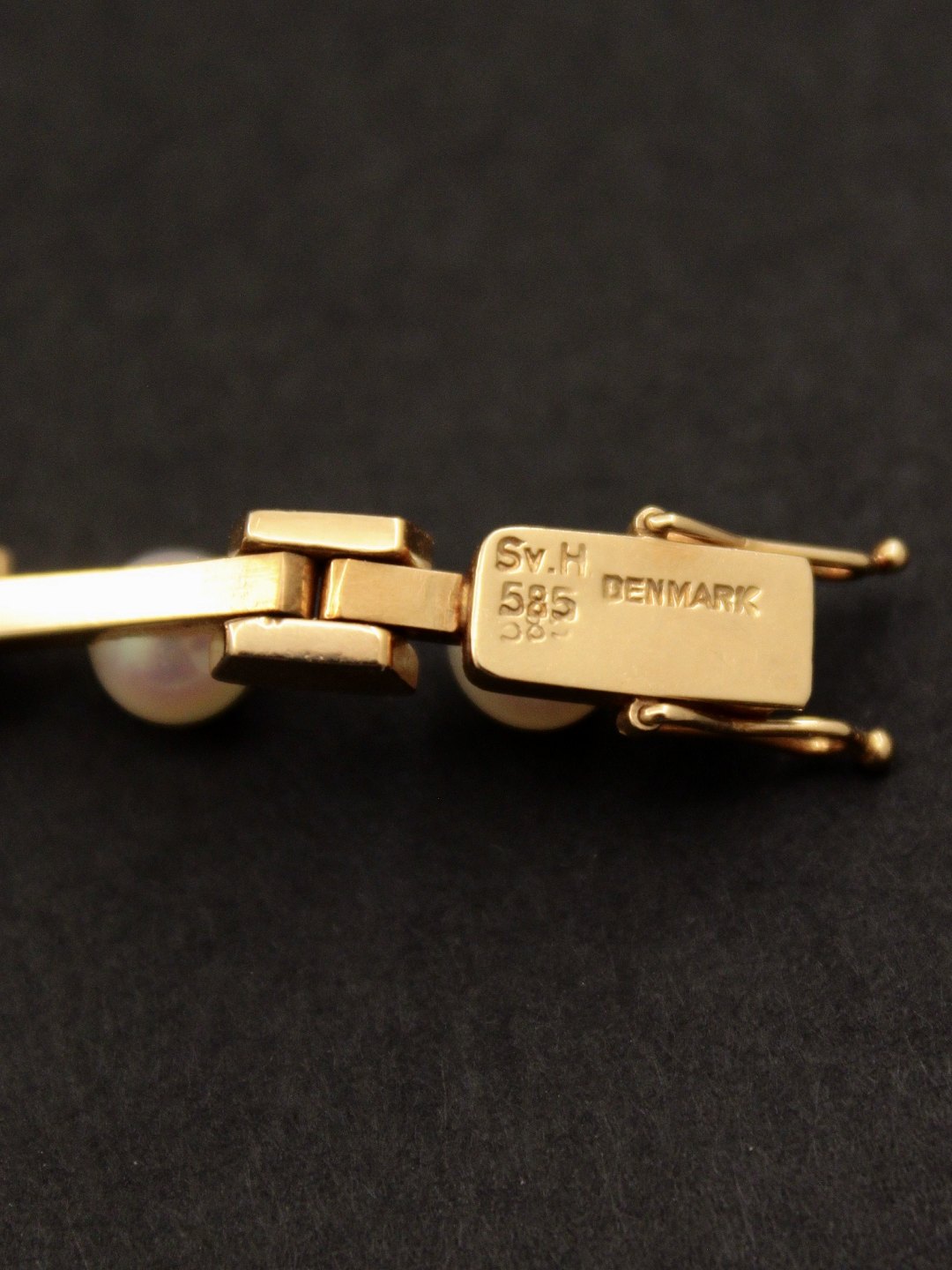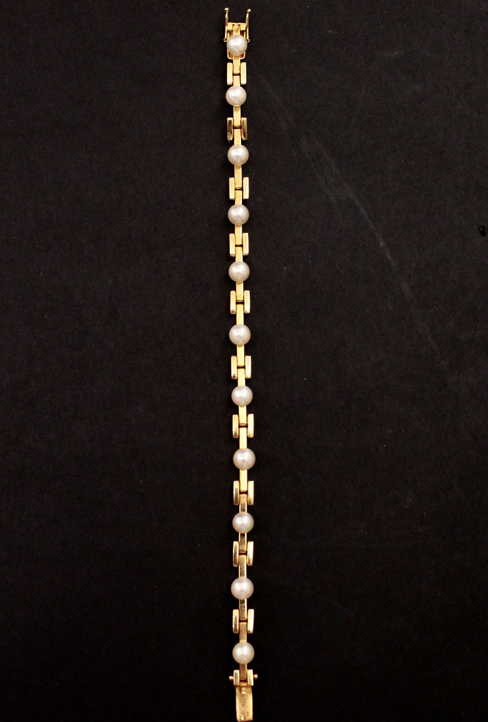 14 carat gold bracelet 18.5 cm. W. 0.56 cm. with real pearls from goldsmith Sv. Haugaard Kolding subject no. 506289