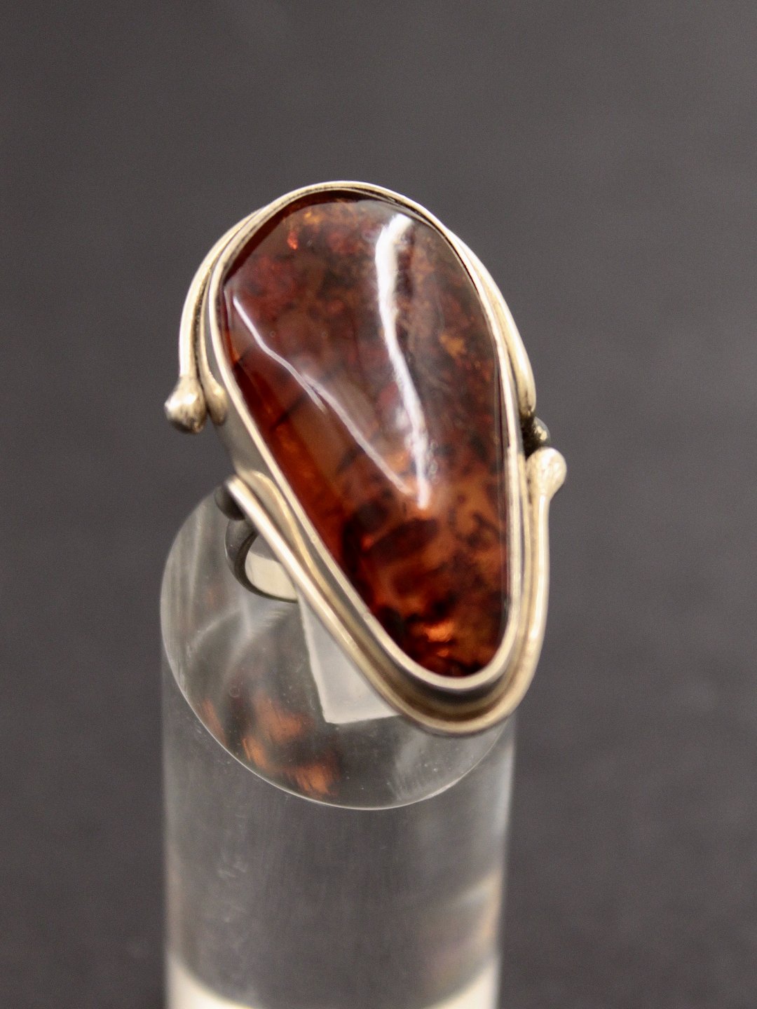 Sterling sølv ring størrelse 57 med rav 3,6 x 1,9 cm. emne nr. 508033