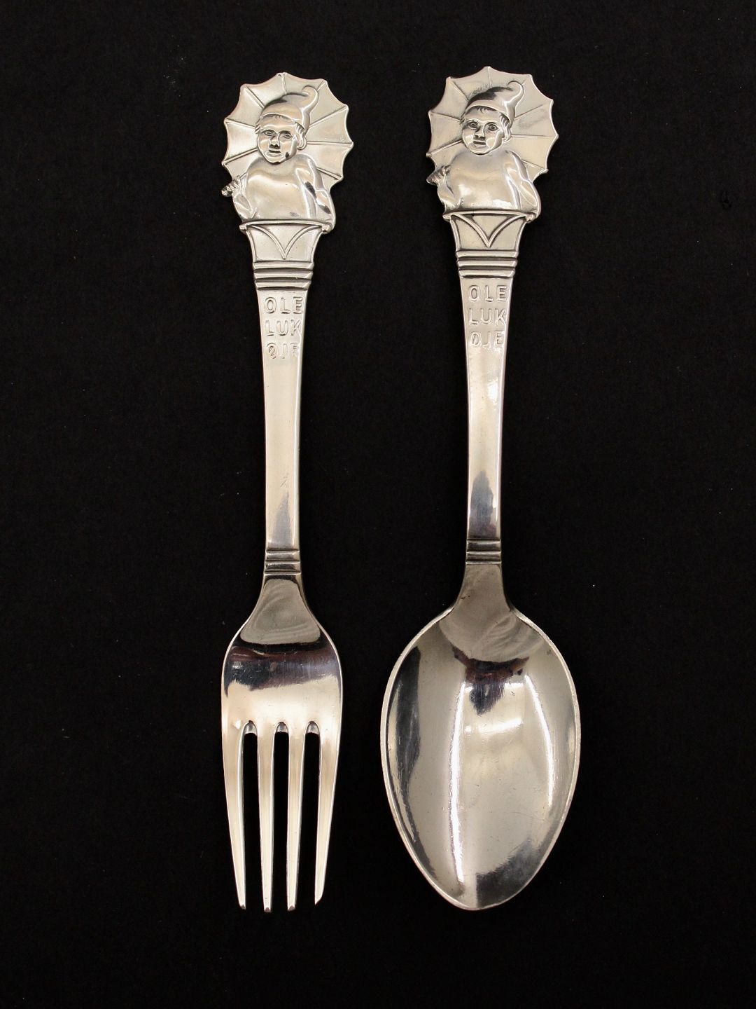 Silver "Ole Lukøje" children's cutlery 14 cm. nice condition item no. 508880