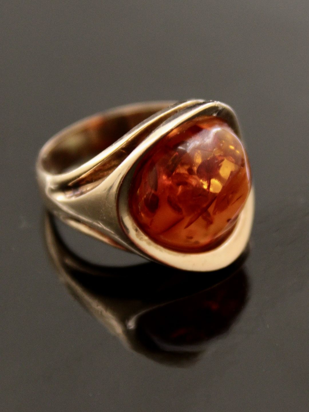 8 carat gold ring size 51-52 with amber from goldsmith E Ferm Copenhagen item no. 509758