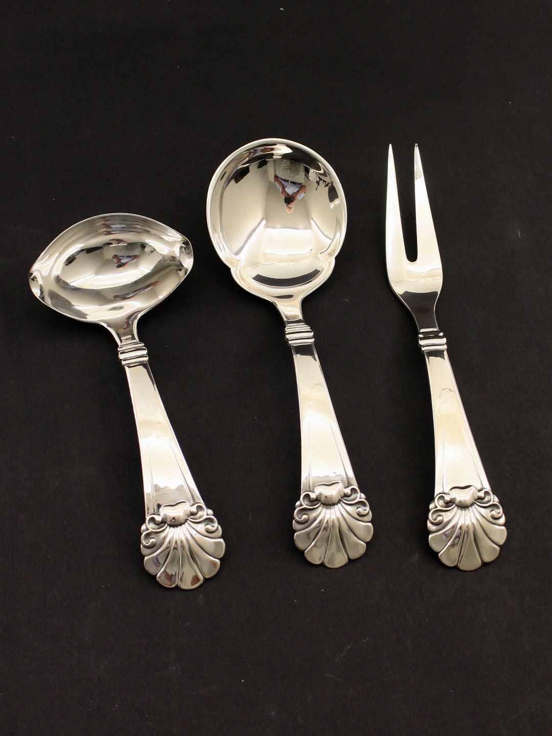 Cohr Fredericia serverings sæt 18-22 cm. Håndsmedet tretårnet sølv emne nr. 511196