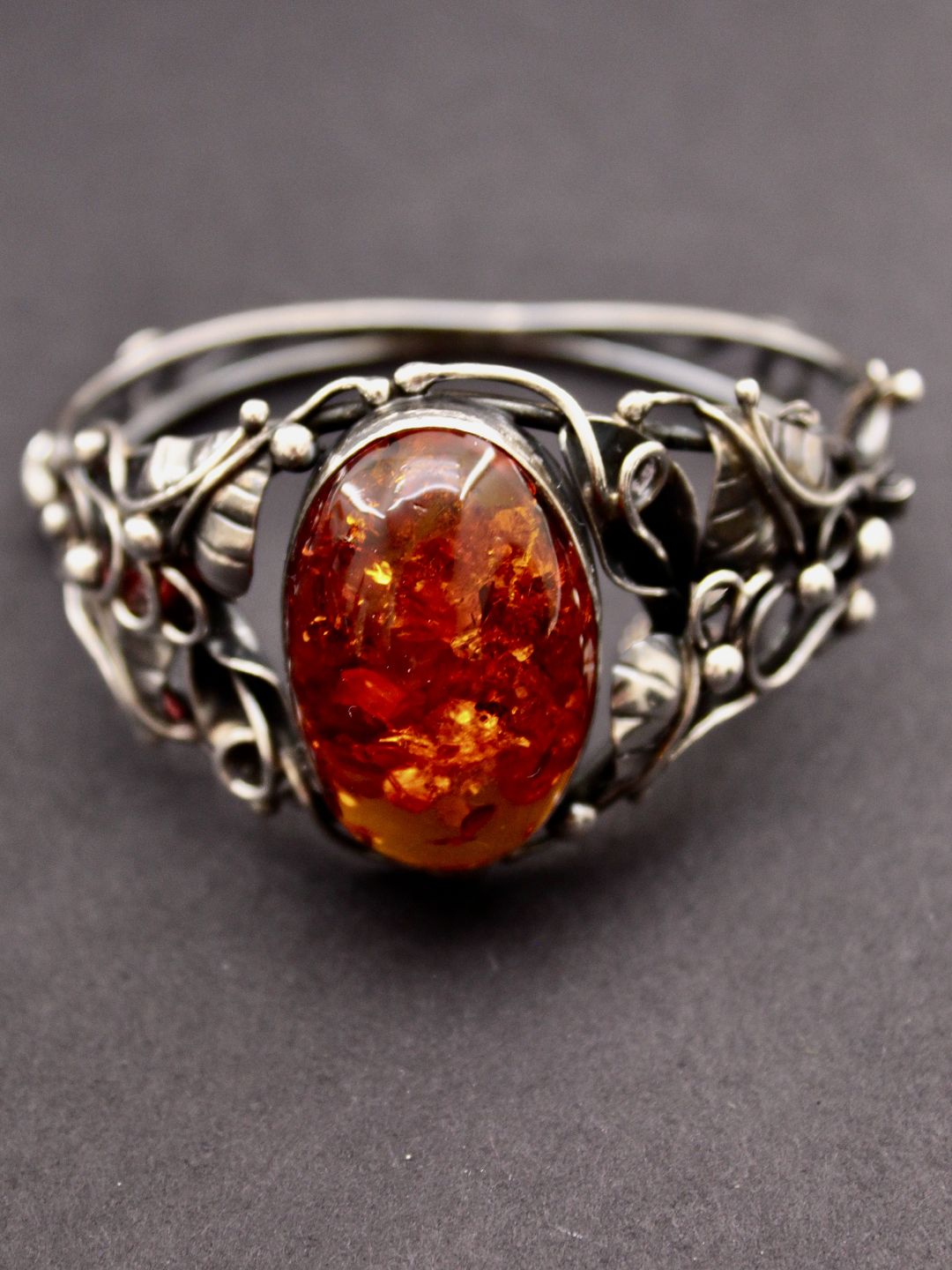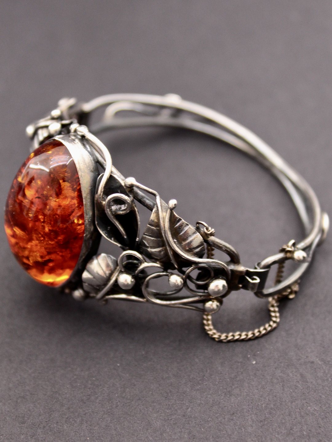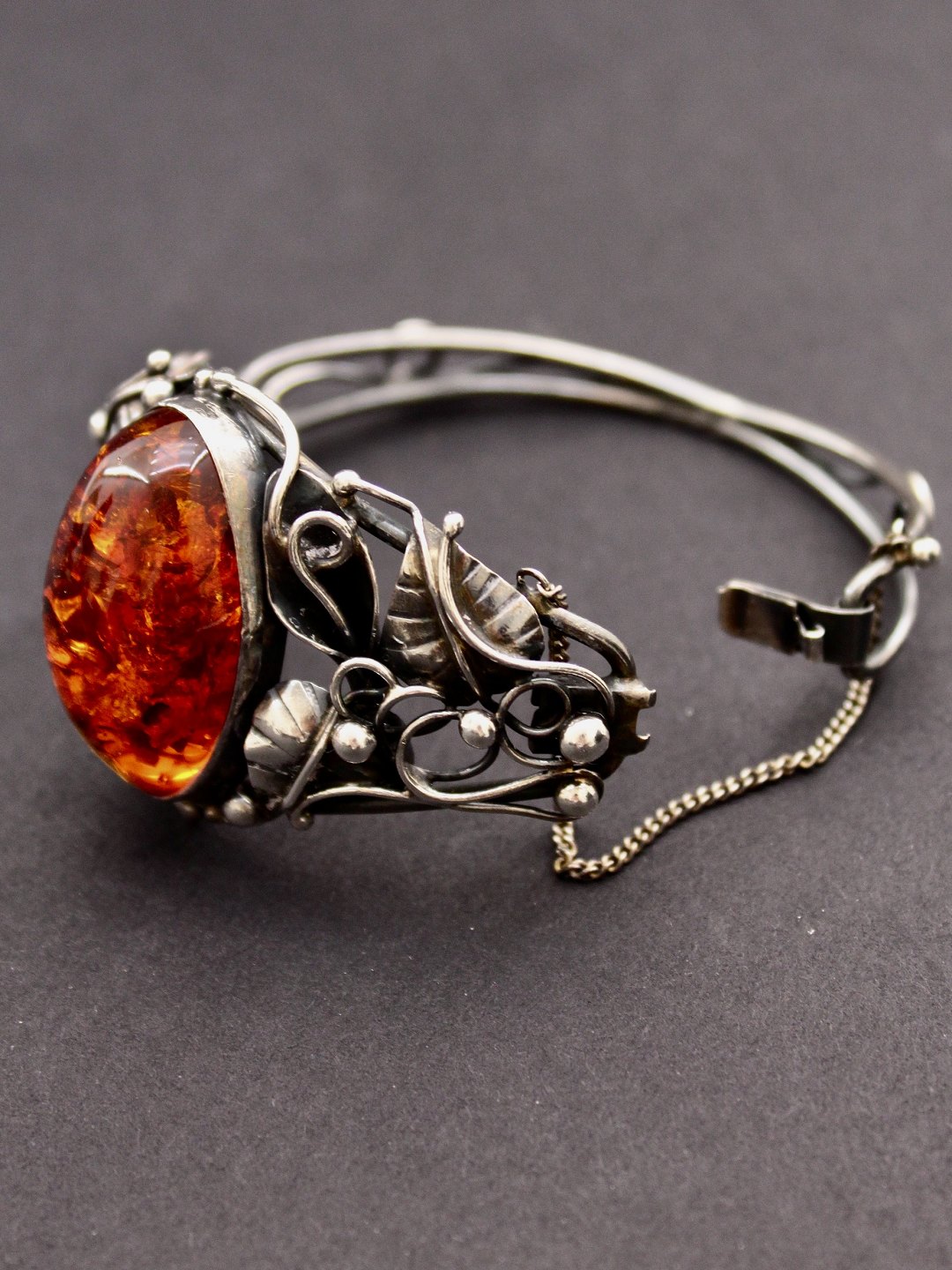 Sterling silver bracelet 6 x 5.5 cm. with amber 2 x 3.3 cm. Item No. 513191