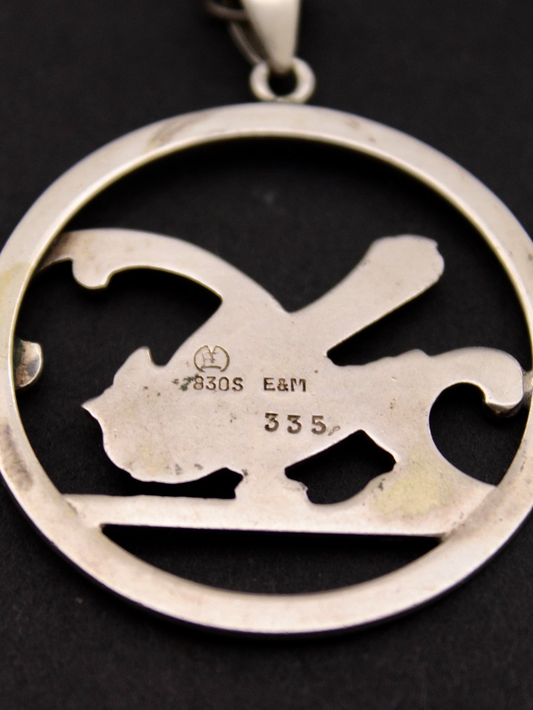Art deco 830 sølv due vedhæng D. 4,2 cm. og kæde 64 cm. Dansk Design fra Eiler & Marløe København emne nr. 515066