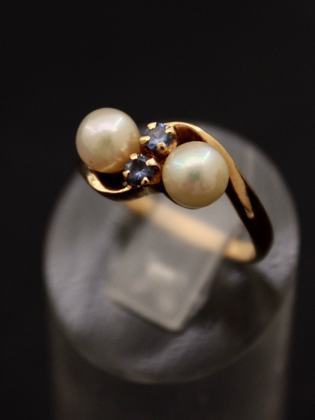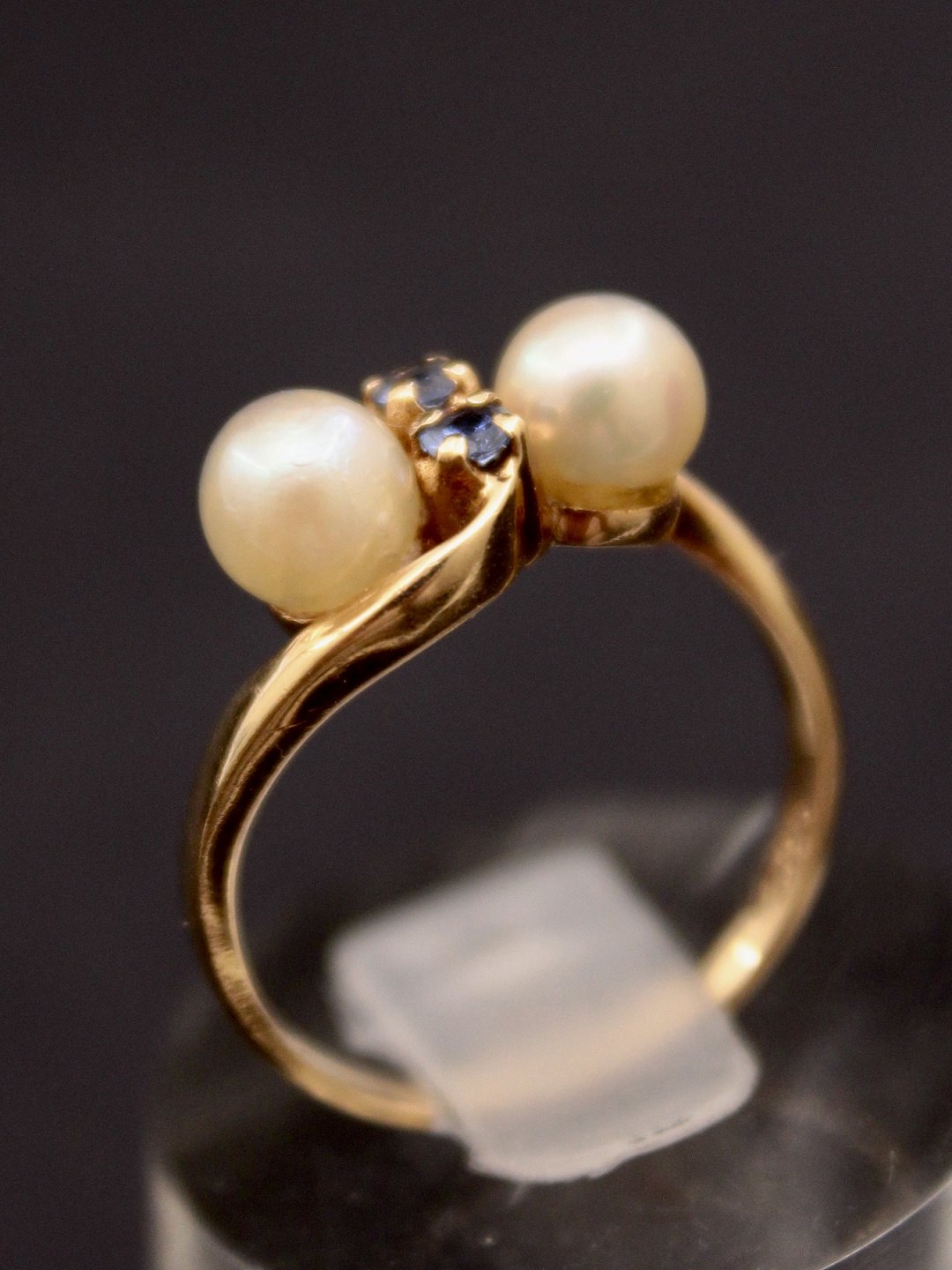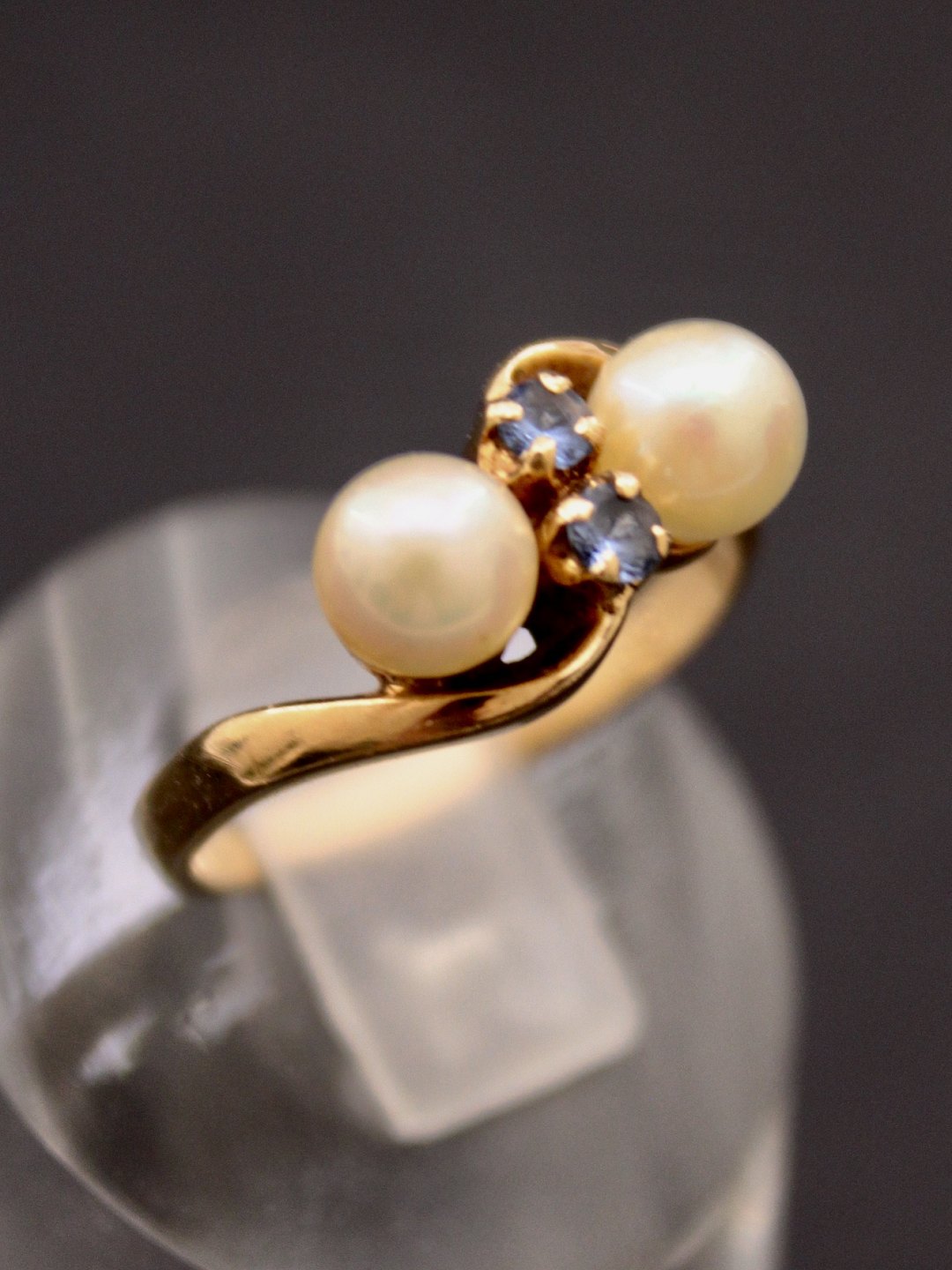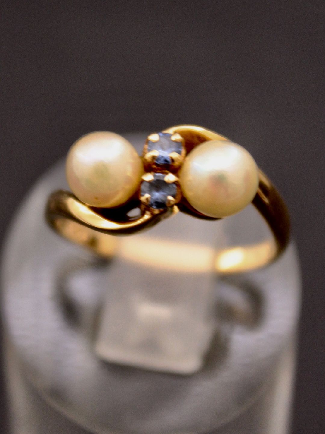 14 carat gold ring size 53 with genuine pearls and small aquamarines from court jewels B Hertz Copenhagen enme no. 520735