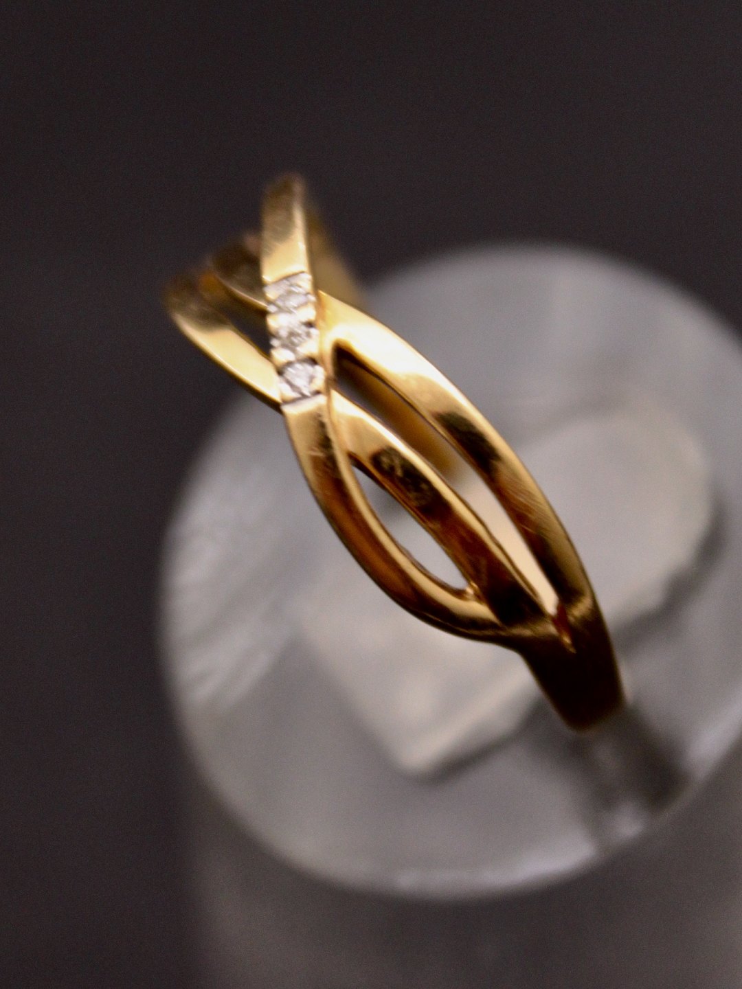 14 karat guld ring størrelse 61 med 3 diamanter fra guldsmed N O Andersen Odense emne nr. 533468