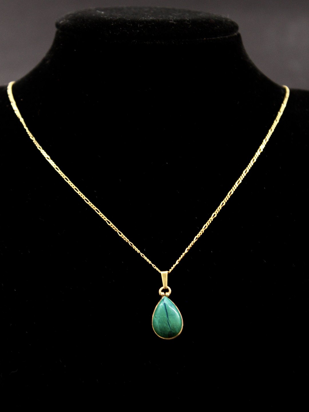 14 carat pendant 1 x 2 cm. with turquoise and chain 55 cm. subject no. 523950