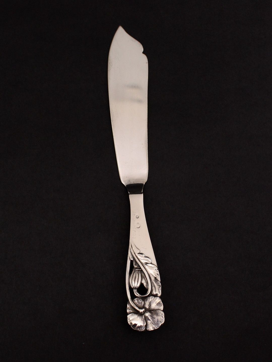 Kage/bryllups kniv 26,5 cm. stål og tretårnet sølv emne nr. 526967