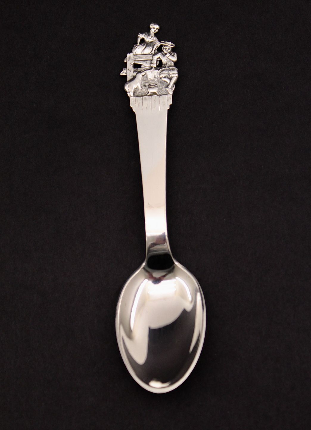 H C Andersen barne ske 14,5 cm. "Svinedrengen" tretårnet sølv flot som ny ingen graveringer emne nr. 528038