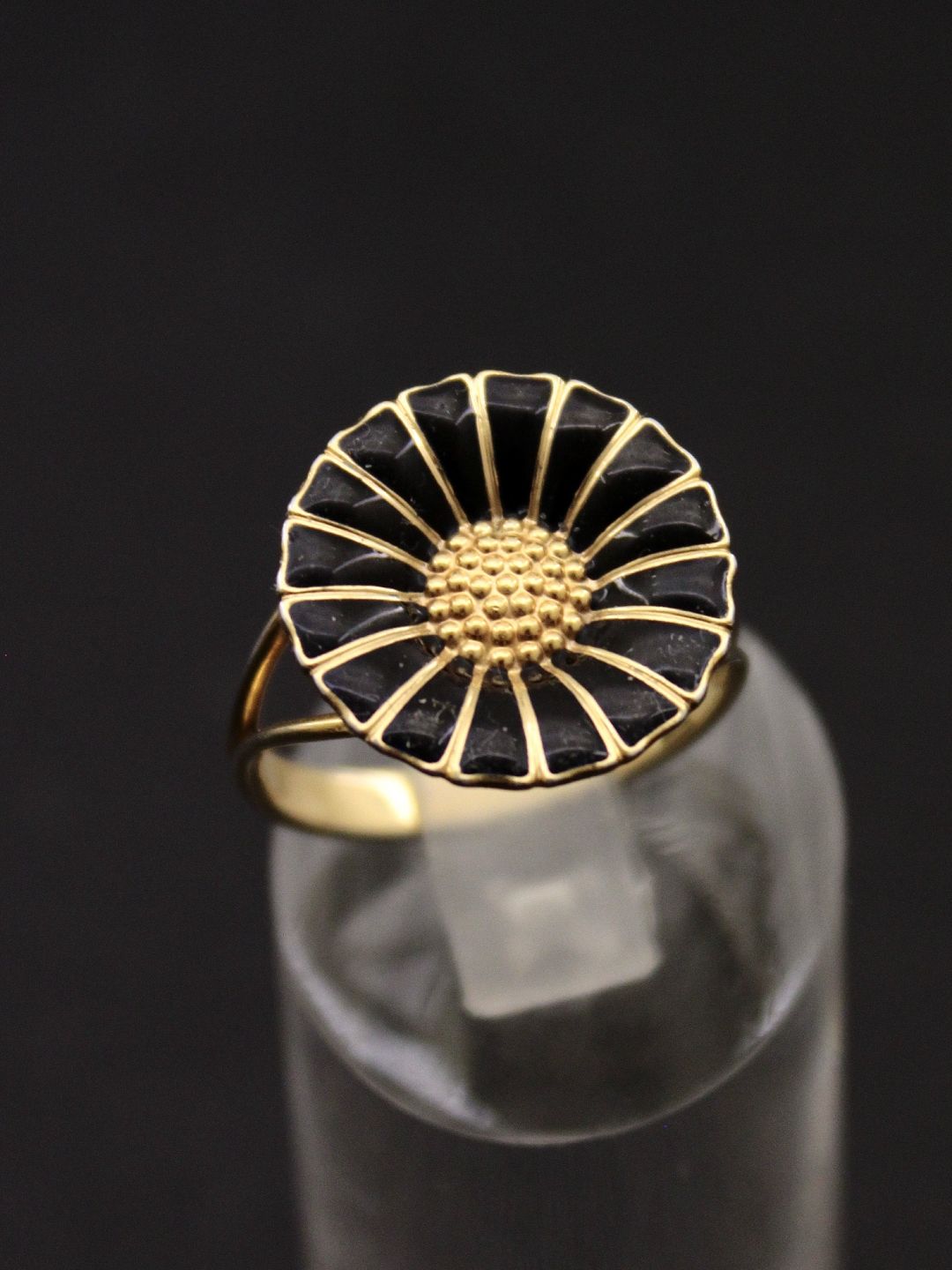 Georg Jensen forgyldt sterling sølv ring størrelse 59 med sort emalje D 1,8 cm. emne nr. 539390