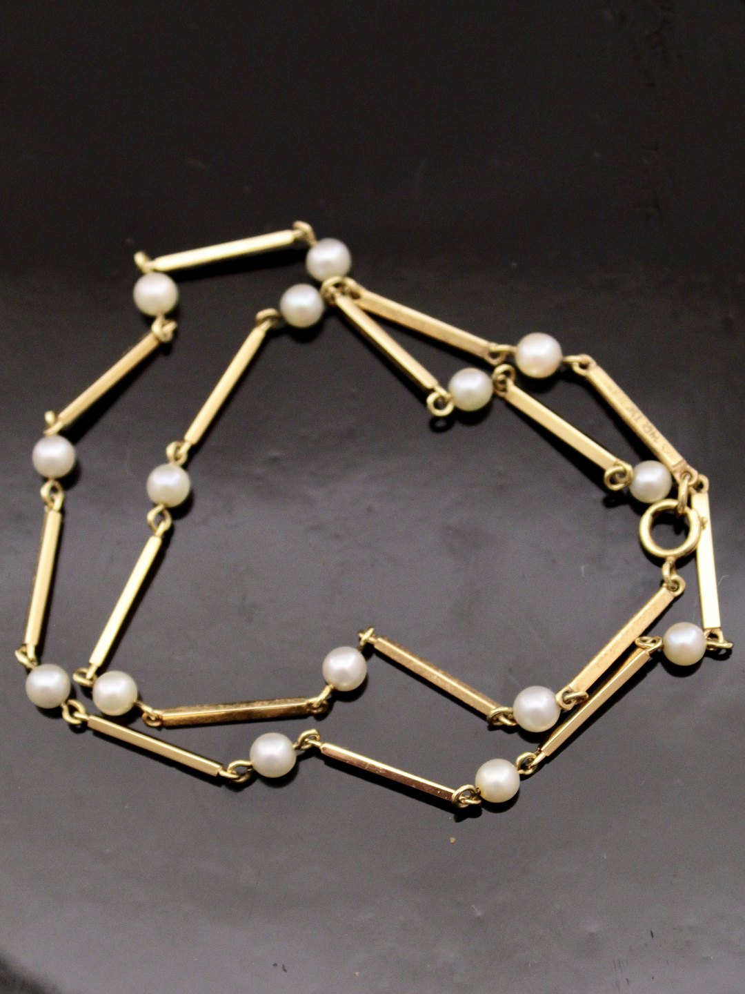 14 carat gold necklace 40 cm. with genuine pearls from goldsmith Th Skat-Rørdam Copenhagen item no.539768