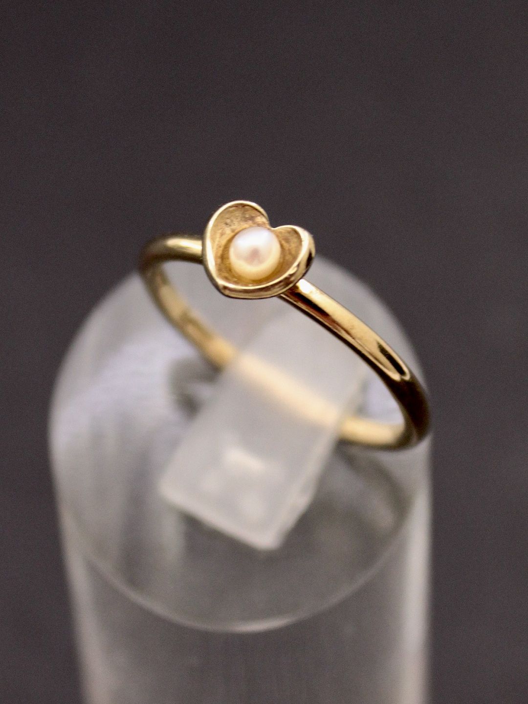 8 karat guld ring størrelse 55 med ægte perle i hjerte formet skål stemplet HHn 333 emne nr. 540767