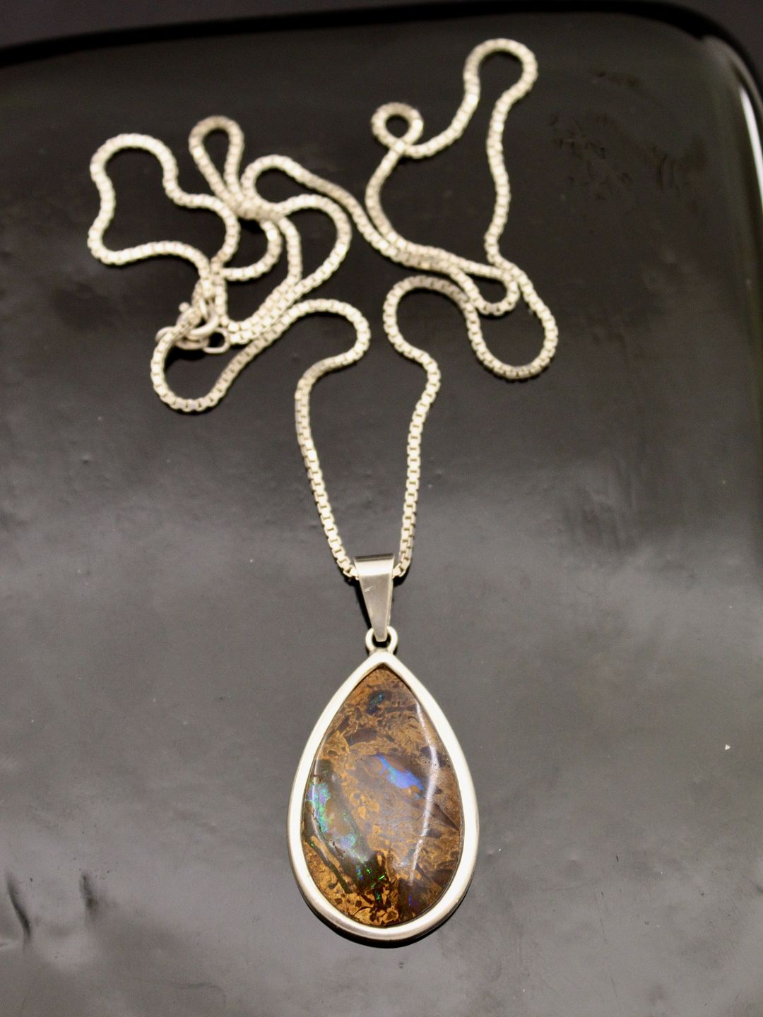 Sterling sølv vedhæng 4 x 2,4 cm. med opal og kæde 60 cm. emne nr. 542291