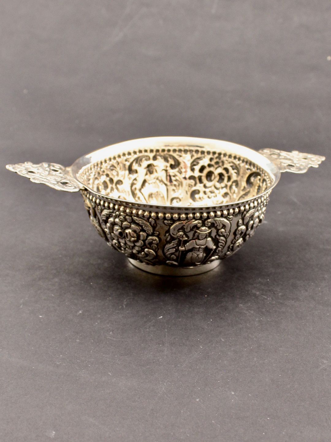 Punslet sølv øre skål D.13 cm. H. 6 cm. 19.årh. emne nr. 543018