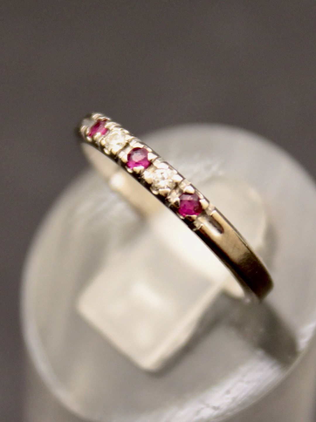 14 karat hvid guld ring størrelse 52 med diamanter og rubiner emne nr. 543167