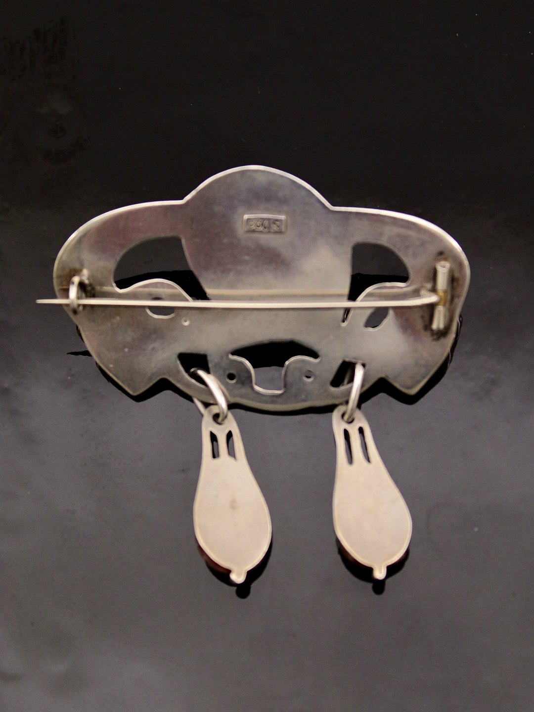 Art nouveau 830 sølv broche 7 x 6,5 cm. med rav emne nr. 545054