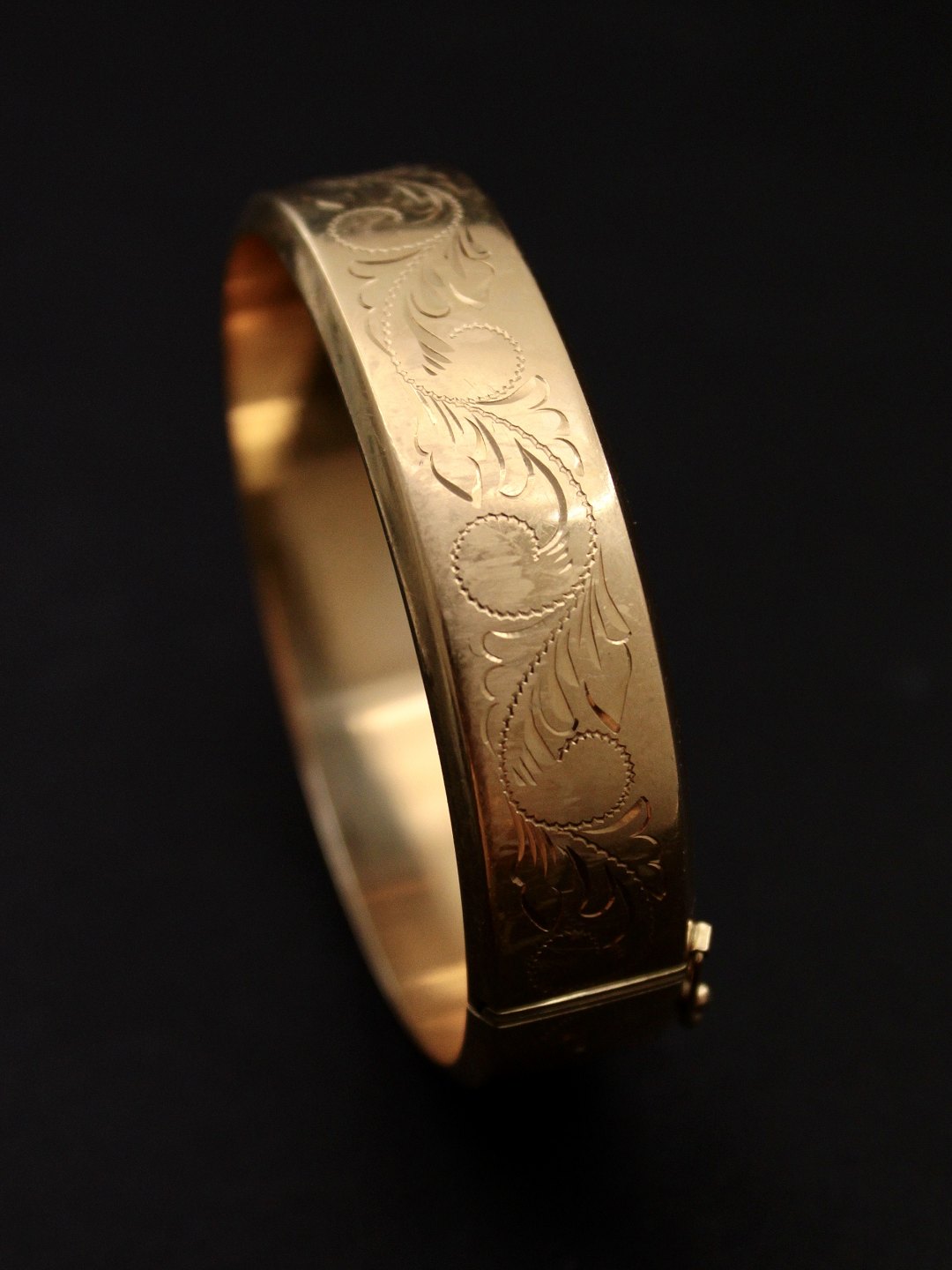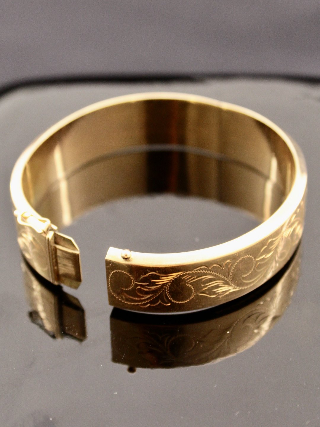 14 carat gold bangle inside 6 x 5.5 cm. W. 1.5 cm. weight 25.7 grams from jeweler Herman Siersbøl Copenhagen item no. 549935