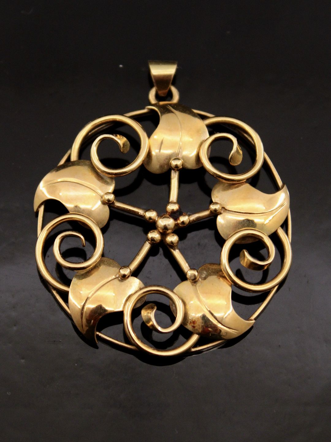 14 karat guld broche D. 4,4 cm. vægt 12,3 gram fra guldsmed Karl Georg Jensen København emne nr. 562654