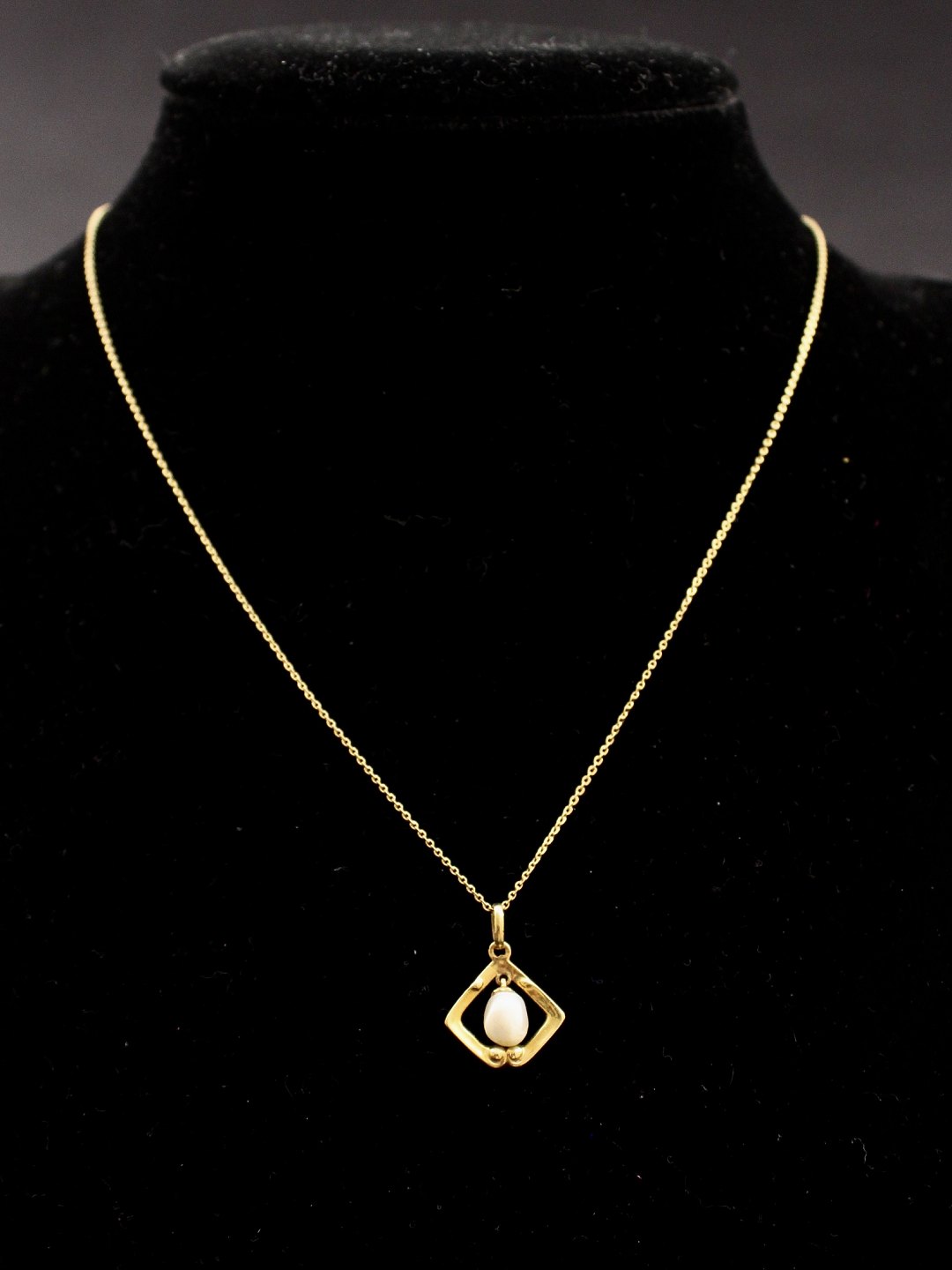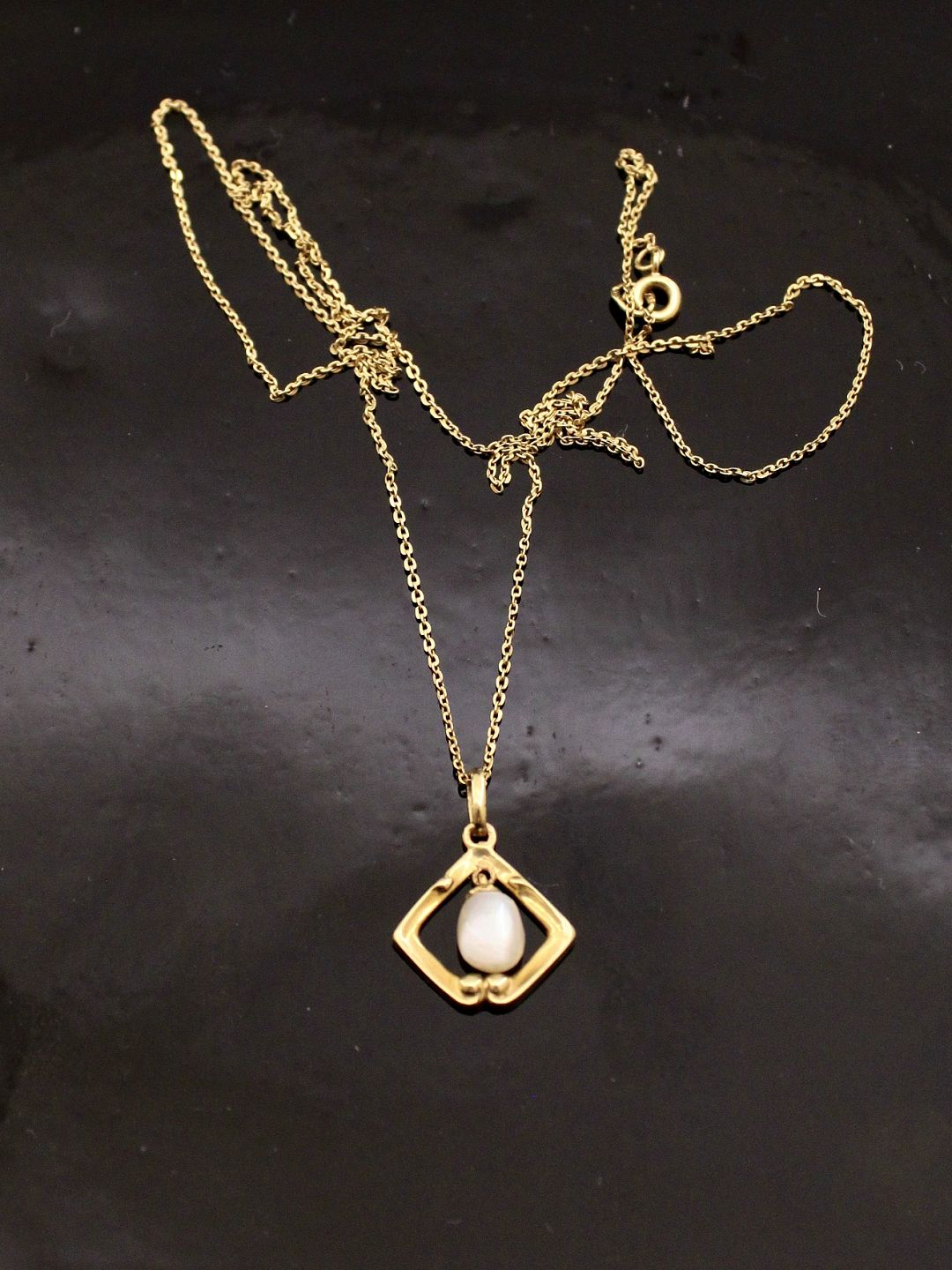 14 karat guld vedhæng 1,3 x 1,4 cm. med perle og 14 karat kæde 42 cm. emne nr. 564296
