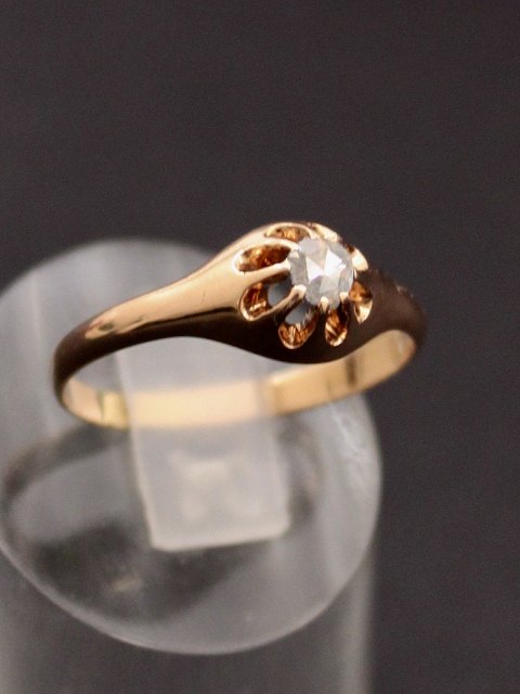 14 karat guldring størrelse 61 med diamant 0,2 carat fra guldsmed W C Green København emne nr. 567698