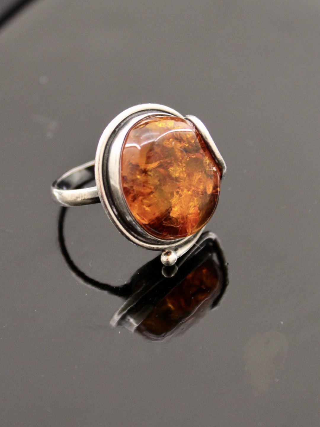 Sterling sølv ring størrelse 57-58 med rav 2,1 x 1,8 cm emne nr. 573960