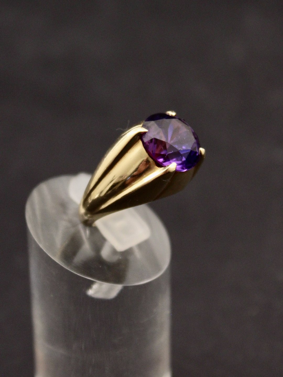14 karat guld ring størrelse 53-54 med ametyst D. 1 cm. fra guldsmed Herman Siersbøl København emne nr. 578427